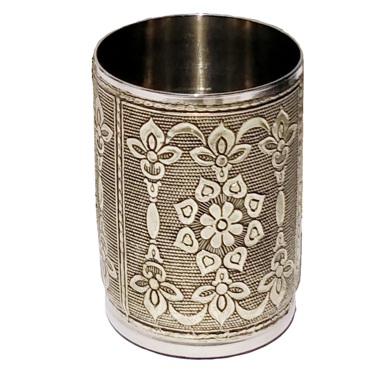 डिज़ाइनर हैंडक्राफ्ट स्टेनलेस सिल्वर ग्लास