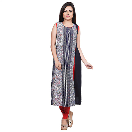 वॉशेबल लेडीज़ कॉटन प्रिंटेड वर्क स्ट्रेट कुर्ती