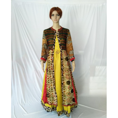 Explore in english - Designer Kurti Lace Patch Work With Button Details And Border With Jacquard Silk