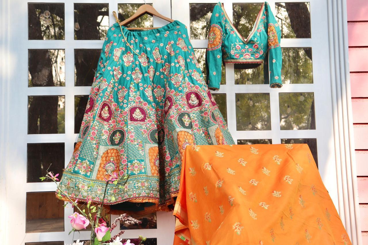 डिज़ाइनर लहंगा बस्ट साइज़: 42 इंच (इंच)
