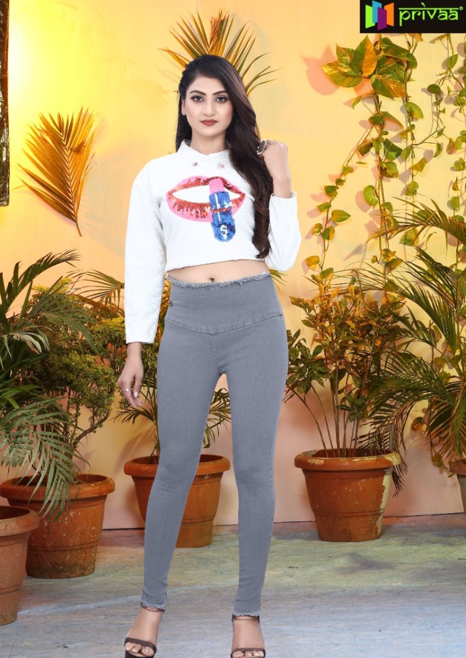 Explore in english - Denim Jegging Denim Solid Stretchable Pant Set