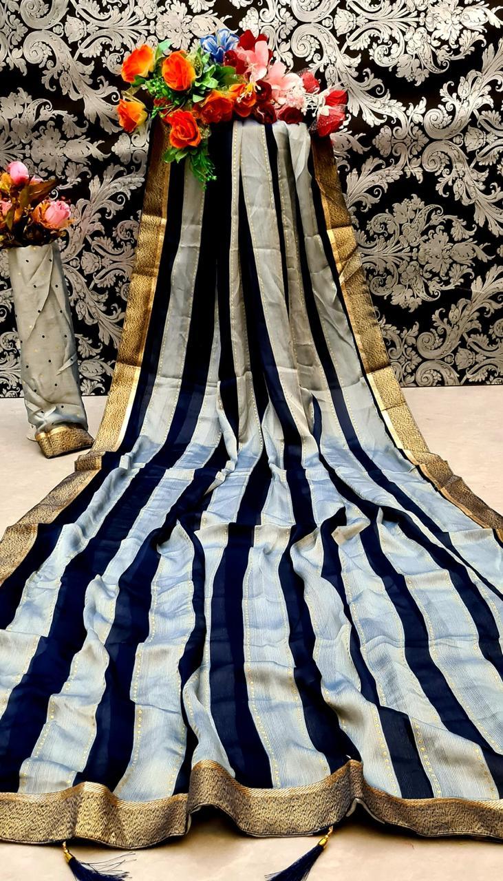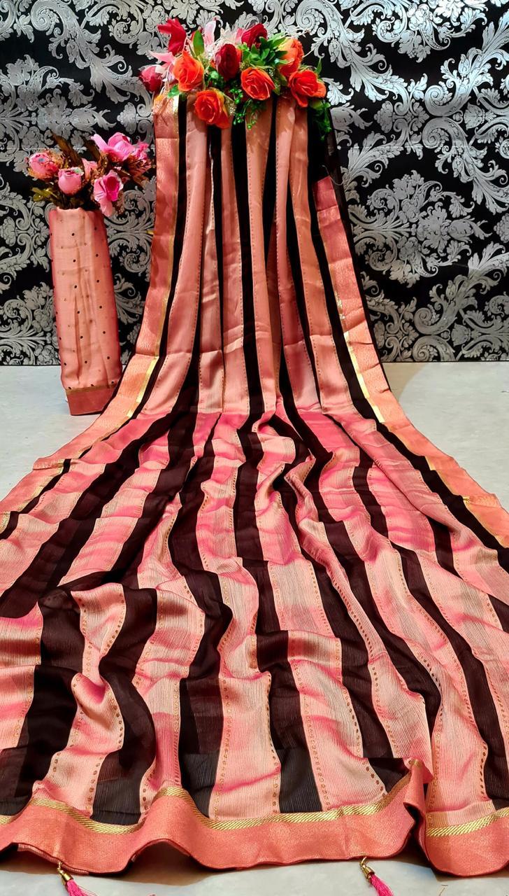 क्रीम रंग की महिलाओं की क्रश चिनोन साड़ी ब्लाउज़ और कमर बेल्ट के साथ