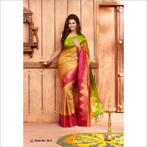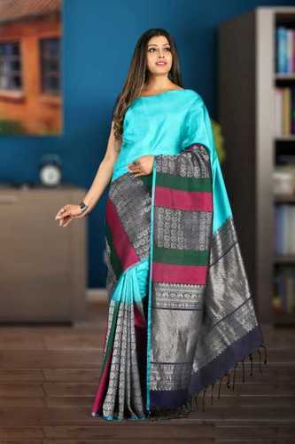 मल्टीकलर डिज़ाइनर सिल्क साड़ी