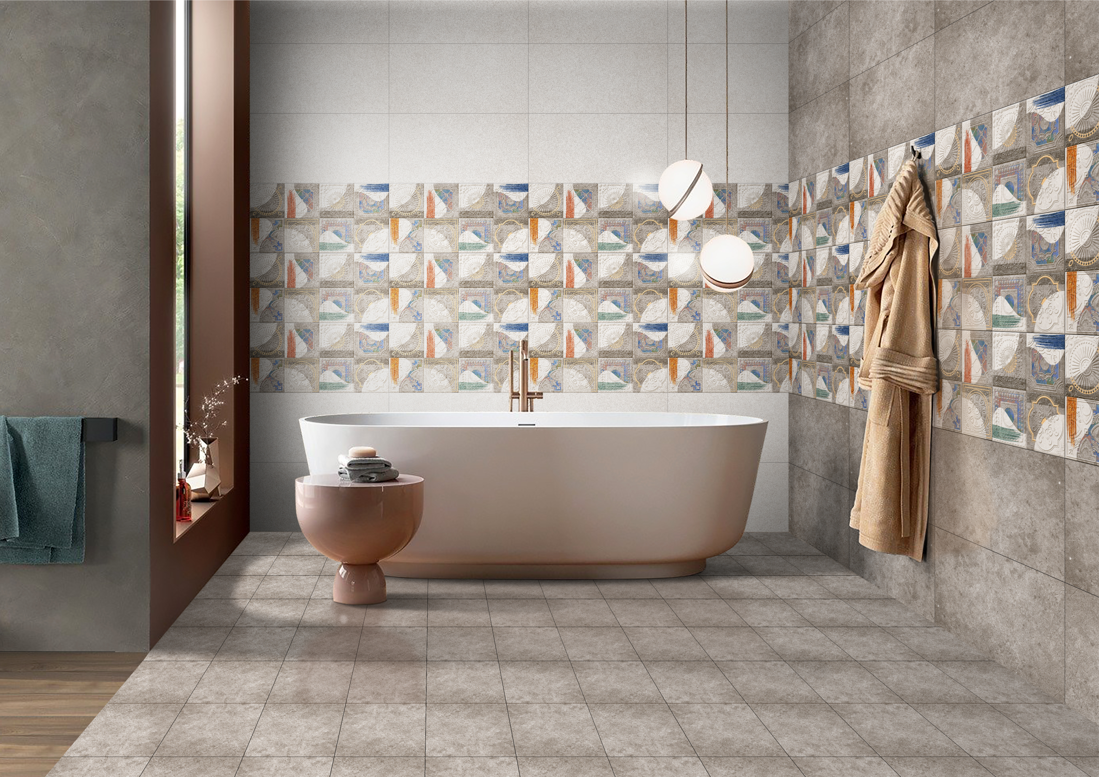 मल्टी कलर ग्रे प्रिंटेड एलिवेशन वॉल टाइल्स