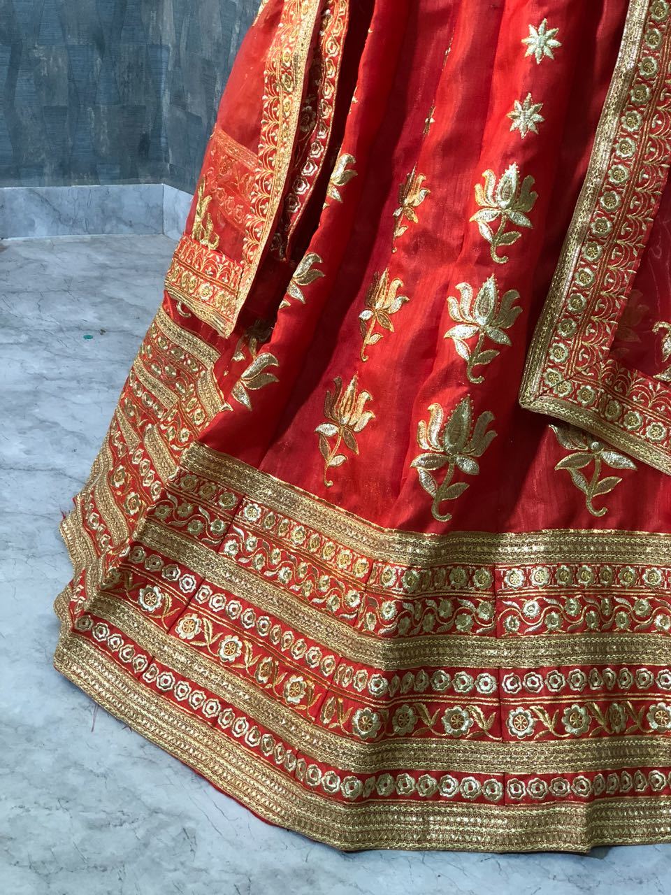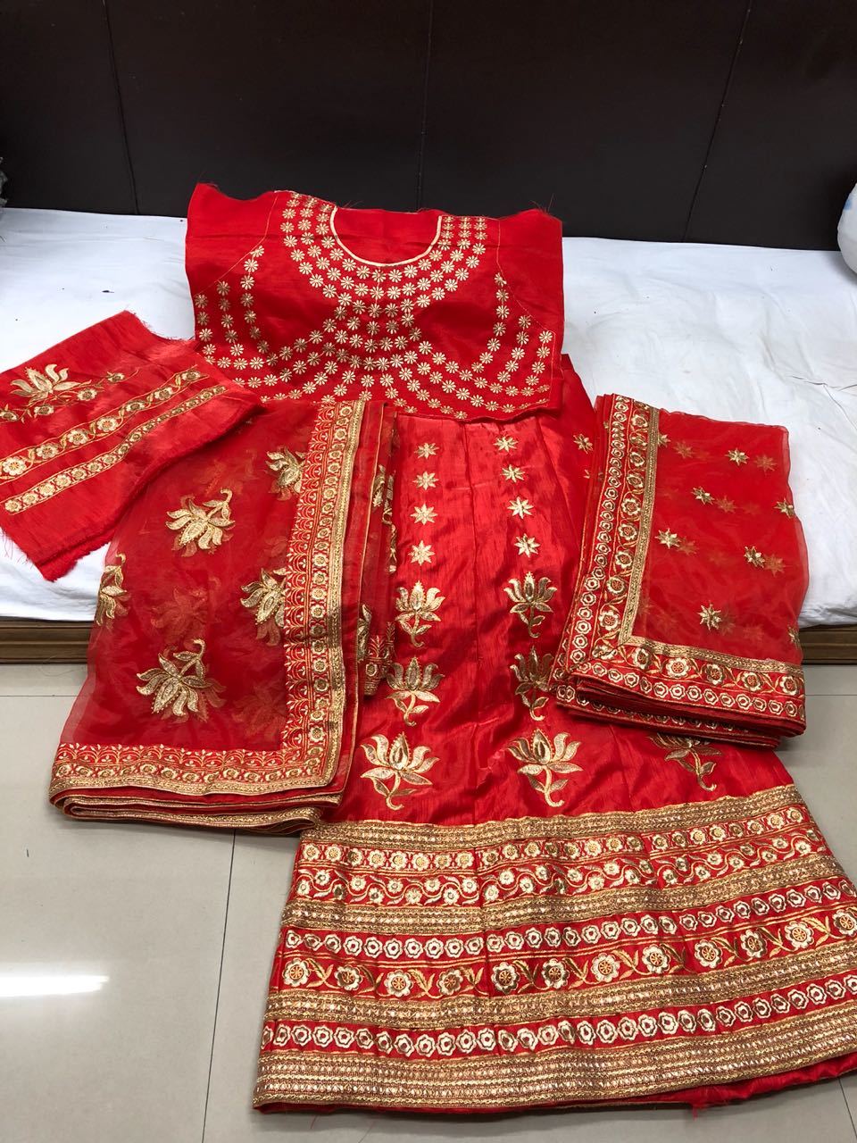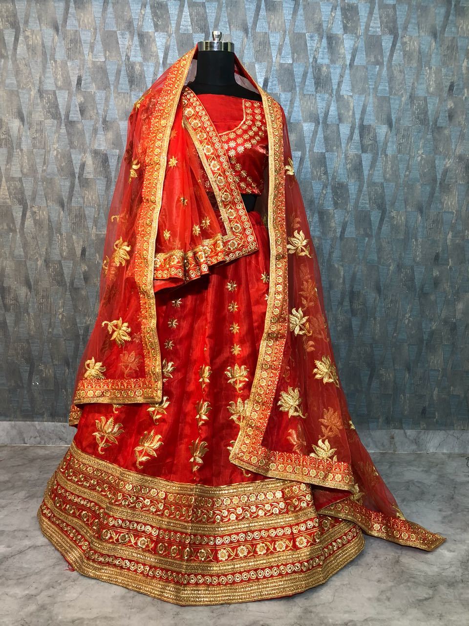 रेड डिज़ाइनर वेडिंग वर्क लहंगा चोली