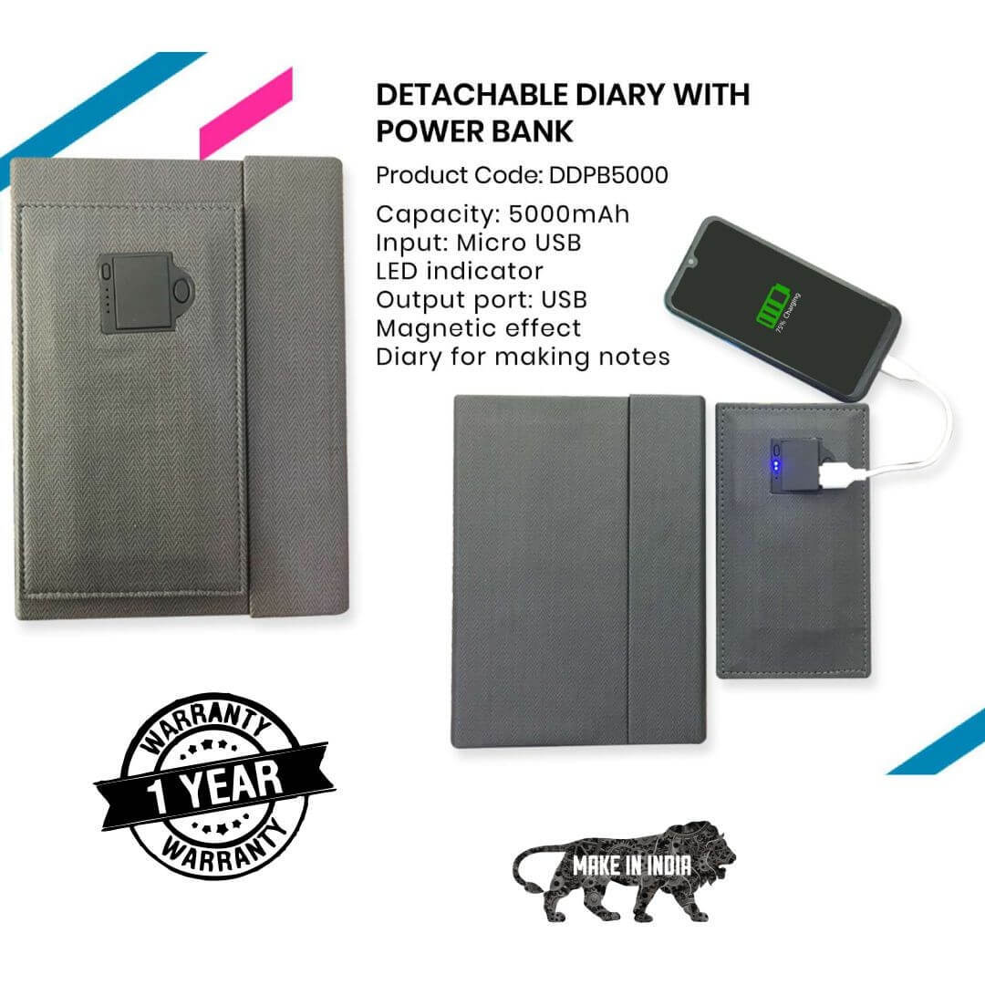 डिटैचेबल डायरी पावर बैंक 5000mah