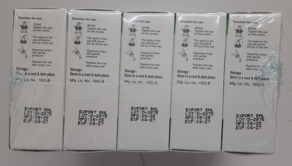 | आयाम (एल* डब्ल्यू* एच) | 5 ml bottle |