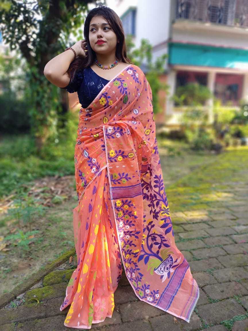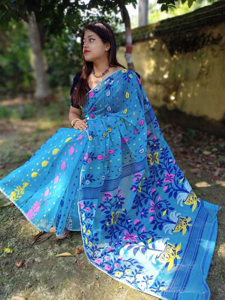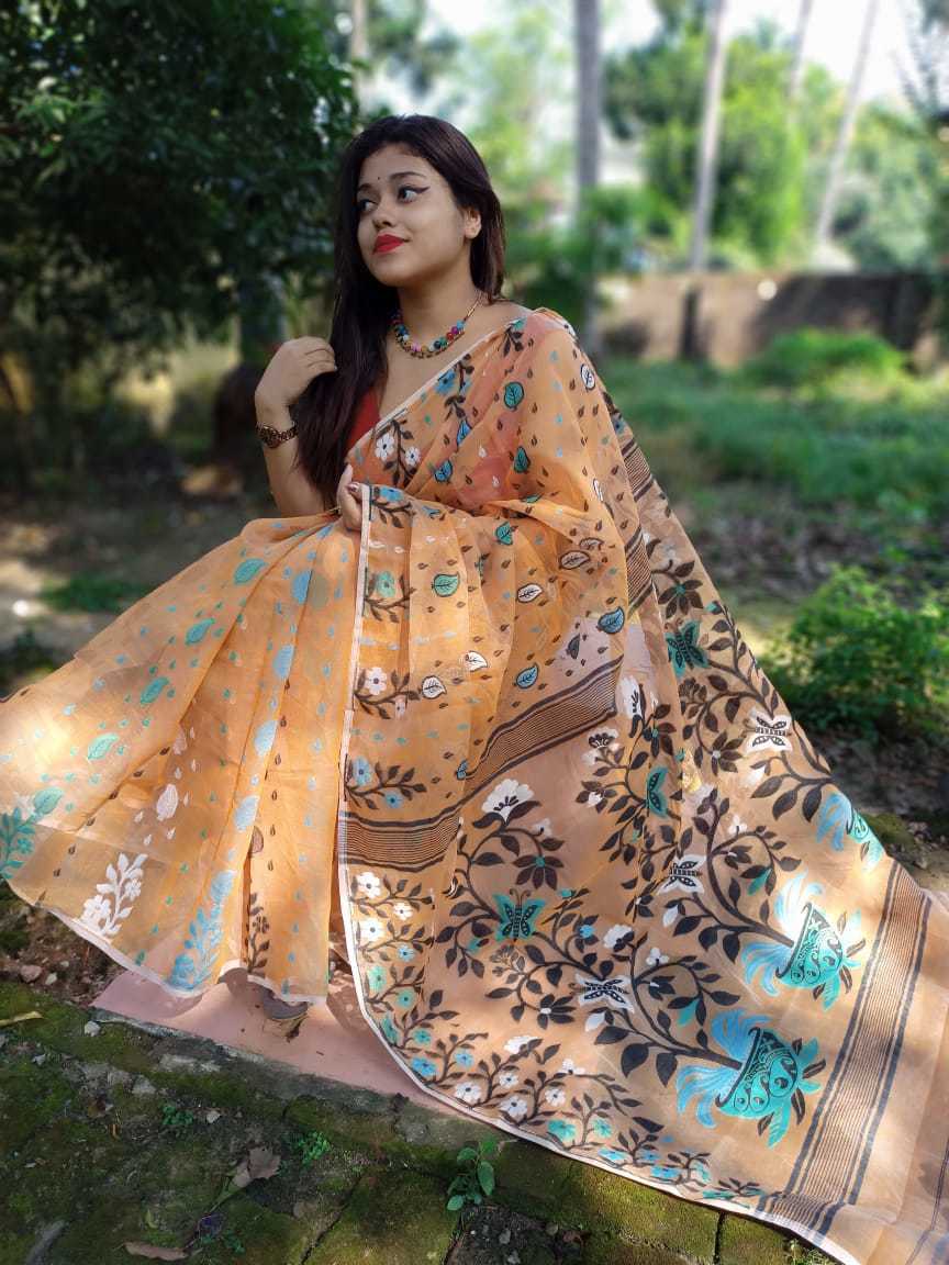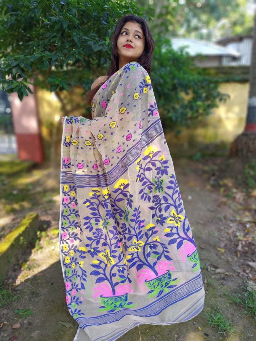 बुनी हुई कॉटन सिल्क धाकई जामदानी साड़ी