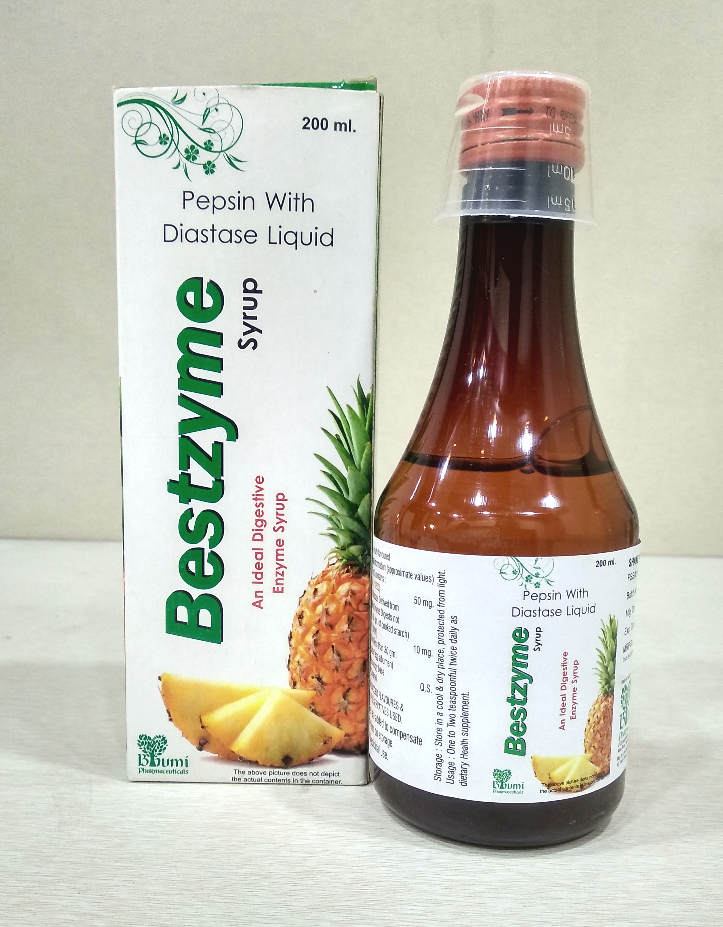 | सामग्रियां | Diastase 50 mg, Pepsin 10 mg per 5 ml |