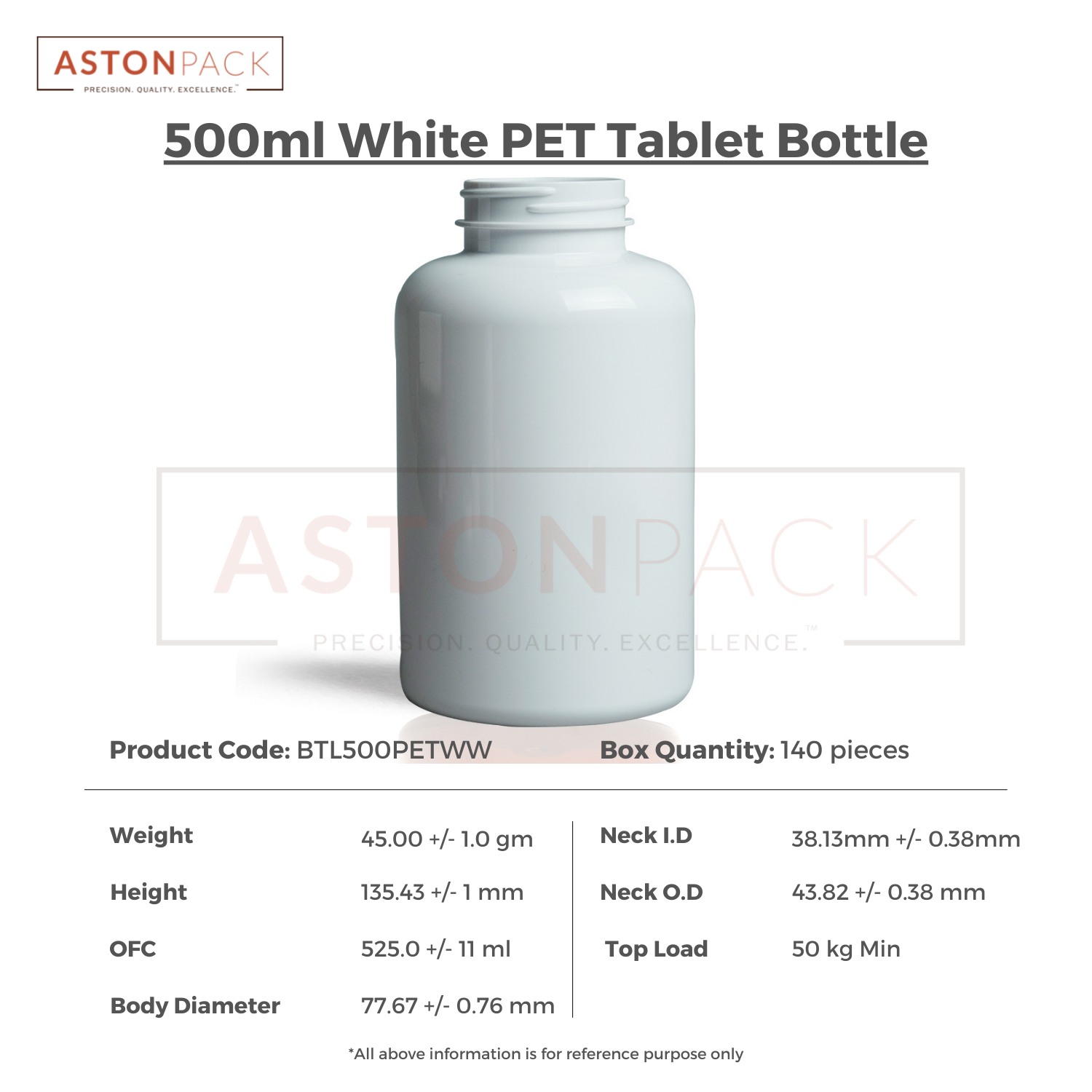 500 मिलीलीटर सफेद आहार पूरक पालतू पैकेजिंग बोतलों का व्यास: 77.67 मिलीमीटर (मिमी)