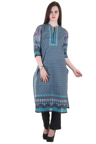 वाटर प्रूफ डिजिटल प्रिंटेड फ्लोर लेंथ एम्ब्रॉएडर्ड कॉटन कुर्ती