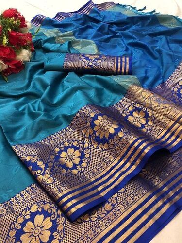 कैज़ुअल दिव्या ब्लू 01 कॉटन सिल्क साड़ी