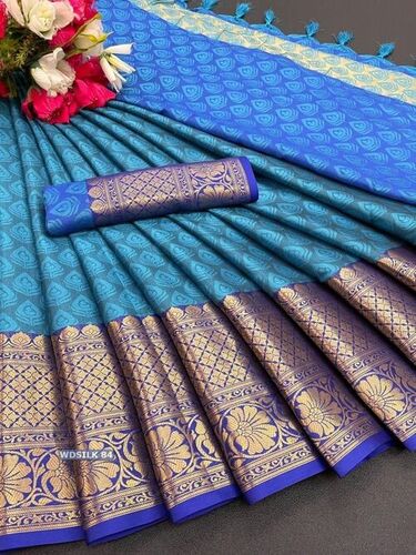 कैज़ुअल दिव्या ब्लू कॉटन सिल्क साड़ी