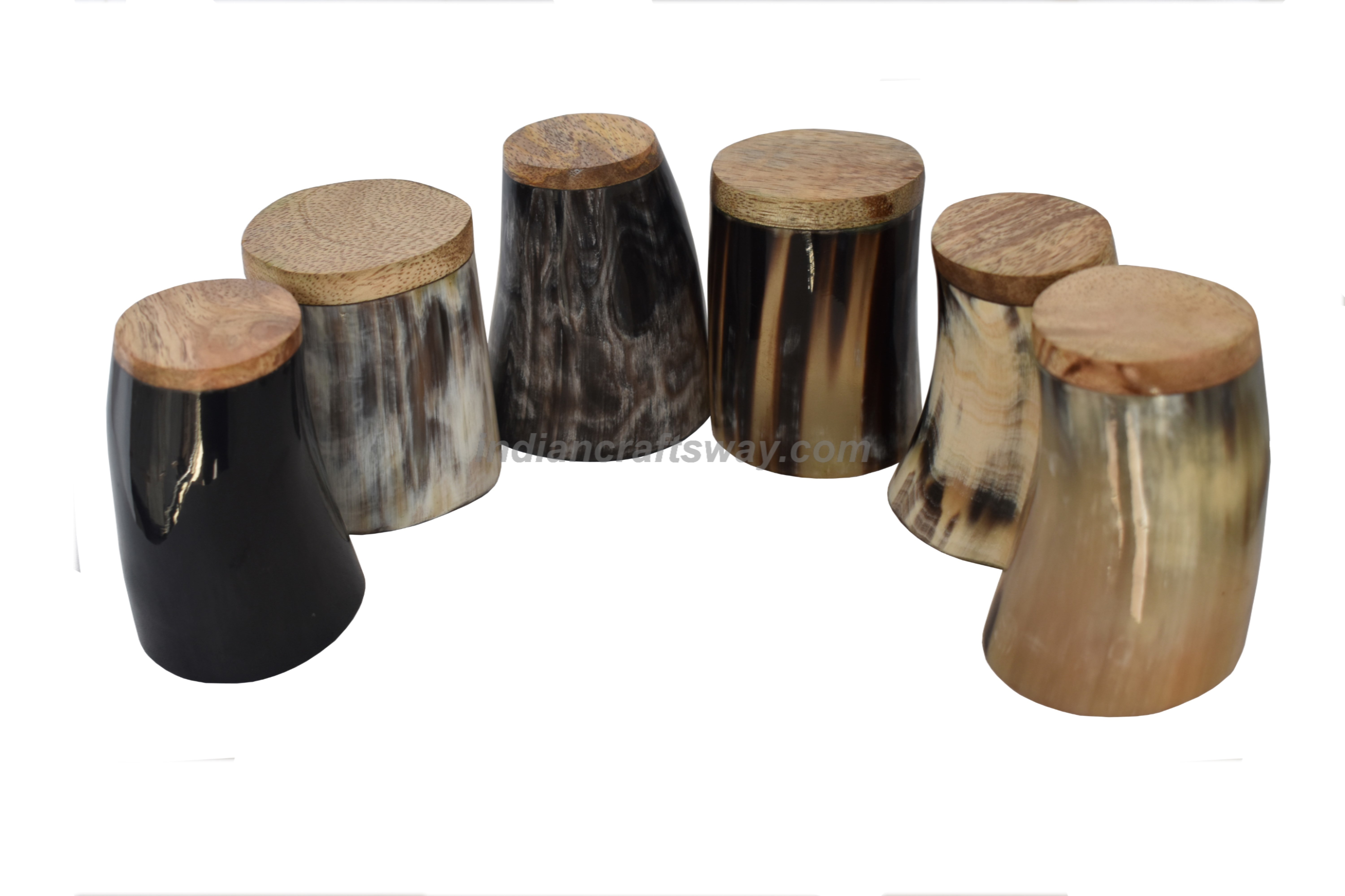 लकड़ी के बेस के साथ प्राकृतिक ड्रिंकिंग हॉर्न कप