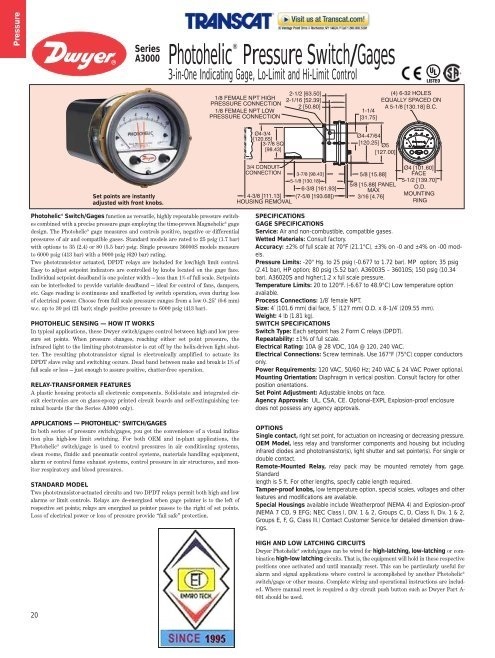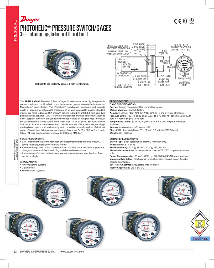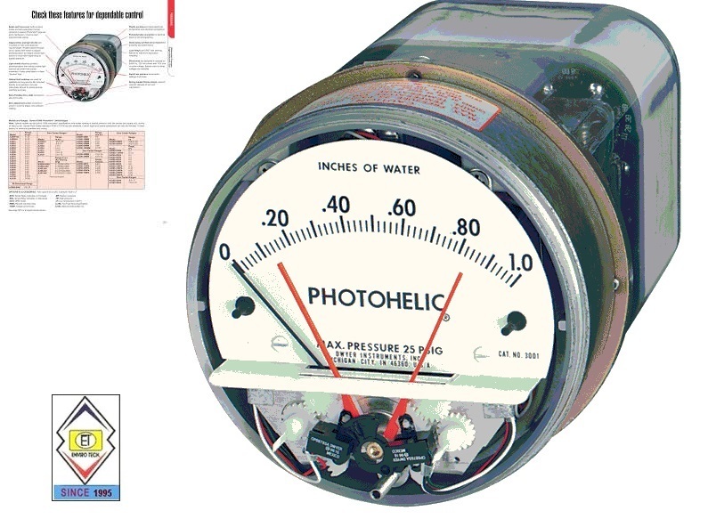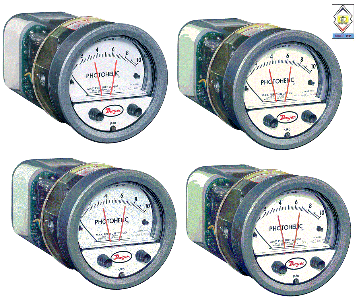 ड्वायर 1620 सीरीज़ सिंगल और ड्यूल प्रेशर स्विच निम्न दबाव को मापते हैं: गैस