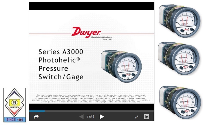 Dwyer A3000-0av फोटोहेलिक प्रेशर स्विच गेज रेंज 0-.50 इंच Wc/500-2800 Fpm