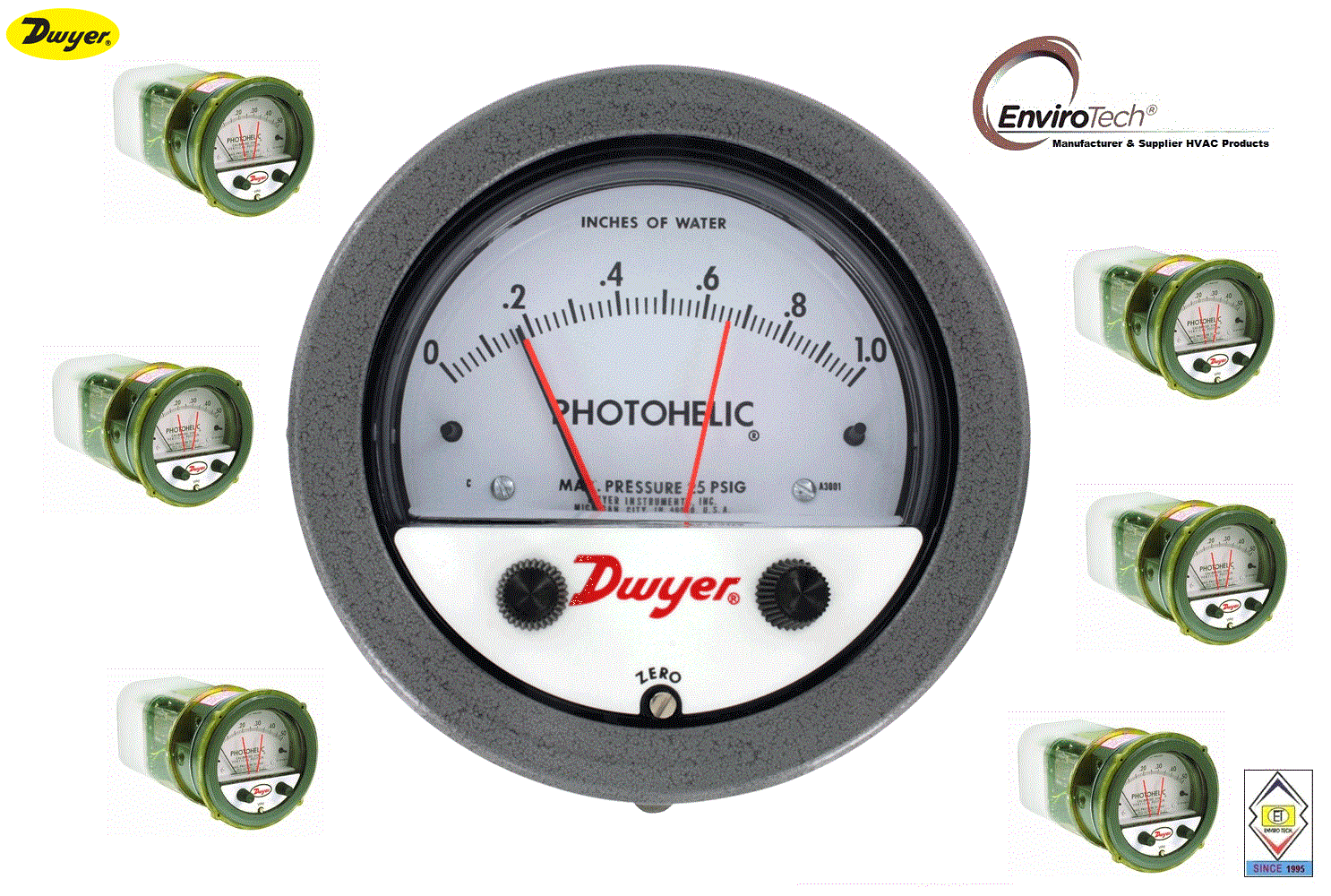 ड्वायर A3000-250pa फोटोहेलिक प्रेशर स्विच गेज रेंज 0-250 Pa सटीकता: 70a F (21.1a C) पर Fs की 2% की छूट