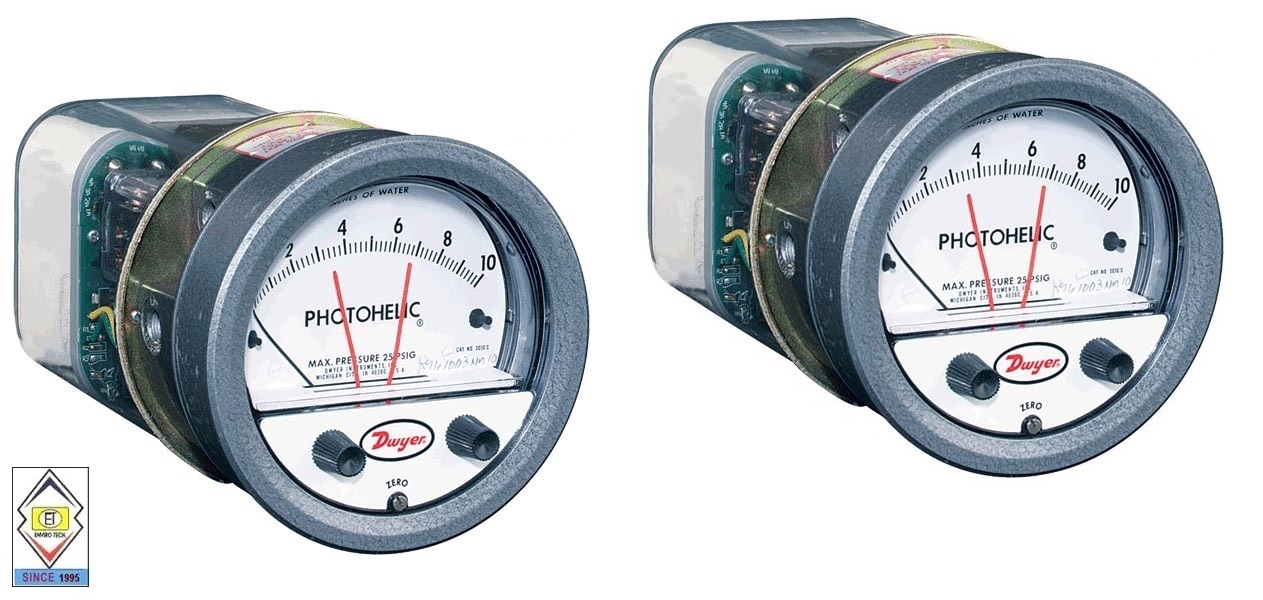 ड्वायर A3000-80cm फोटोहेलिक प्रेशर स्विच गेज रेंज 0-80 Cm Wc. व्यास: 4" (101.6 मिमी) डायल फेस