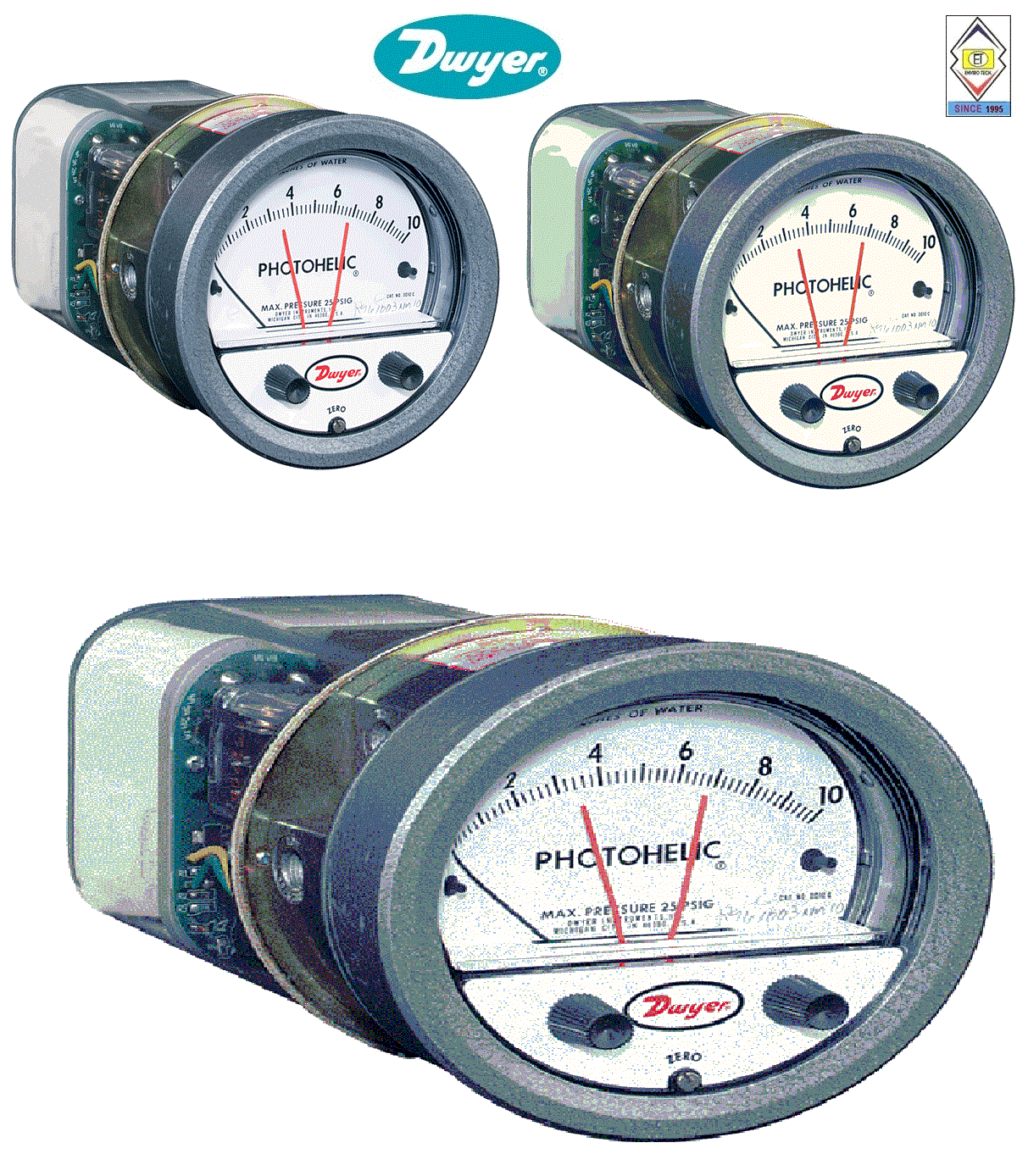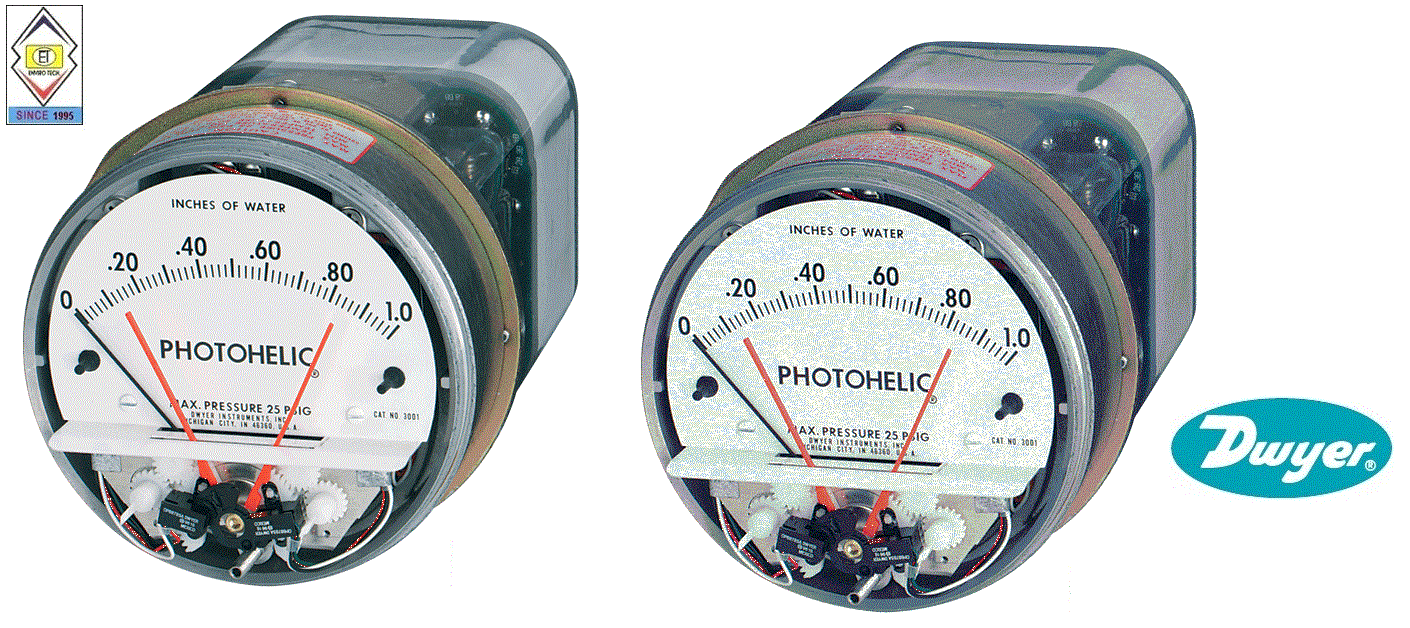 Explore in english - Dwyer A3025 Photohelic Pressure Switch Gauge Range 0-25 Inch w.c.