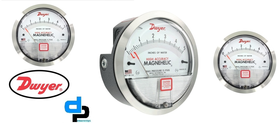 ड्वायर सीरीज़ 2300 मैग्नेहेलिक डिफरेंशियल प्रेशर गेज डायल सामग्री: ग्लास