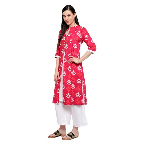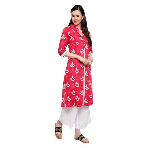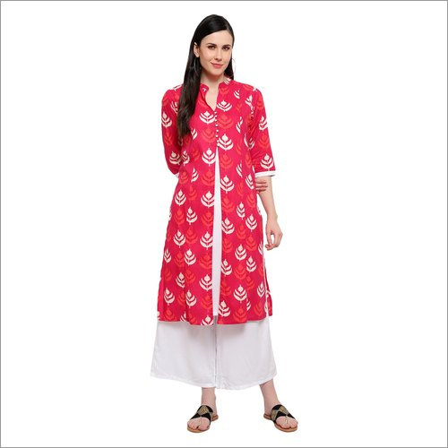 वॉशेबल एलन हाइव पिंक (गुलाबी) रेयन कुर्ती