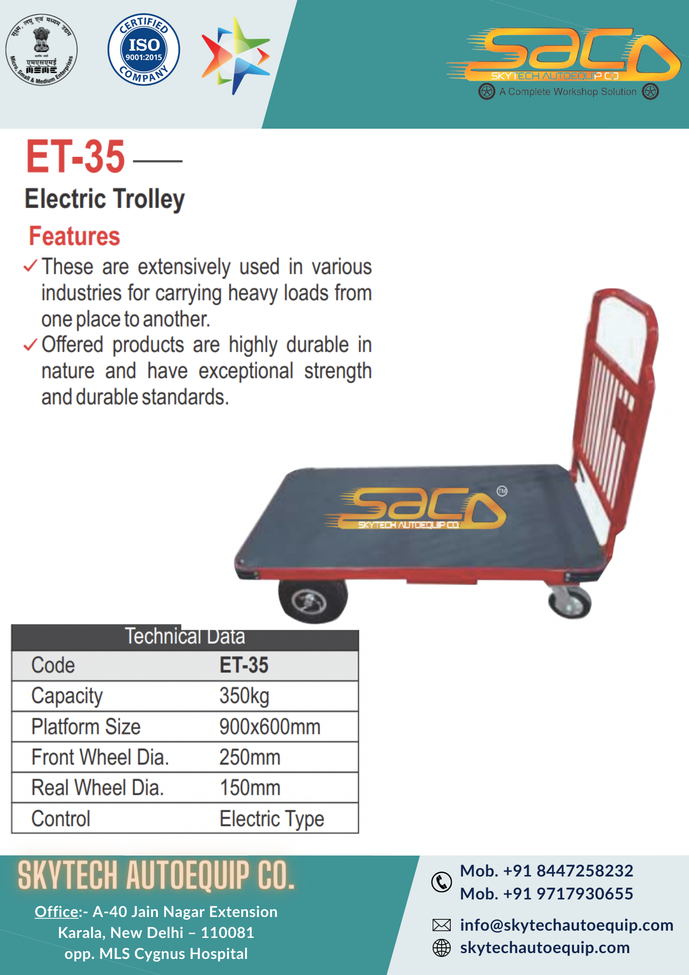 इलेक्ट्रिक ट्रॉली उठाने की क्षमता: 350 किलोग्राम (किग्रा)