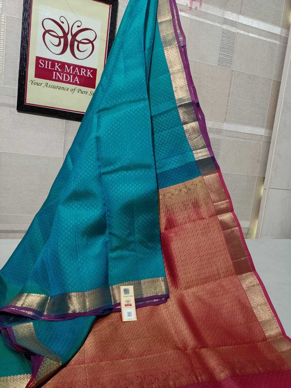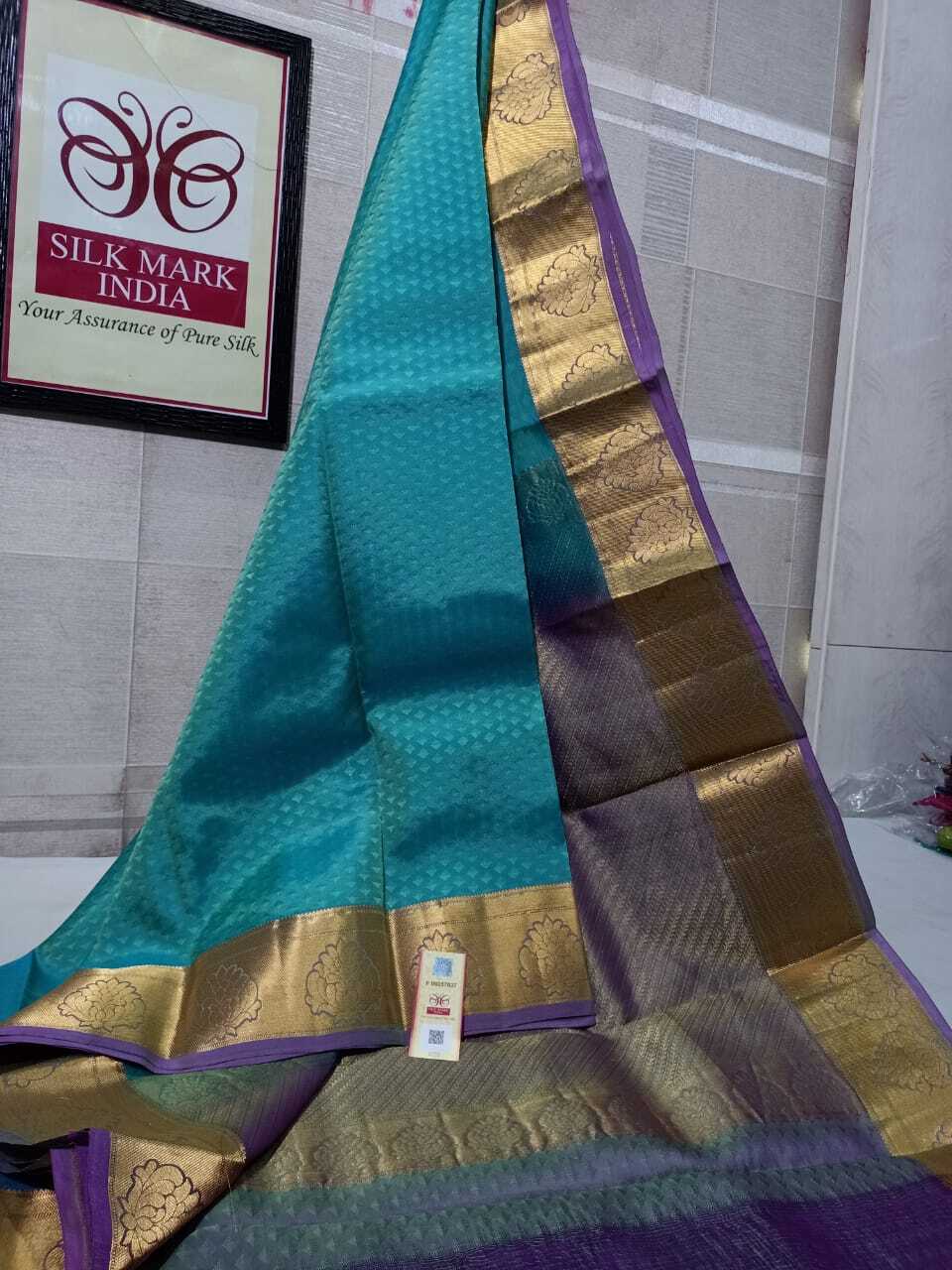ब्लू प्योर सिल्क कांजीवरम साड़ी