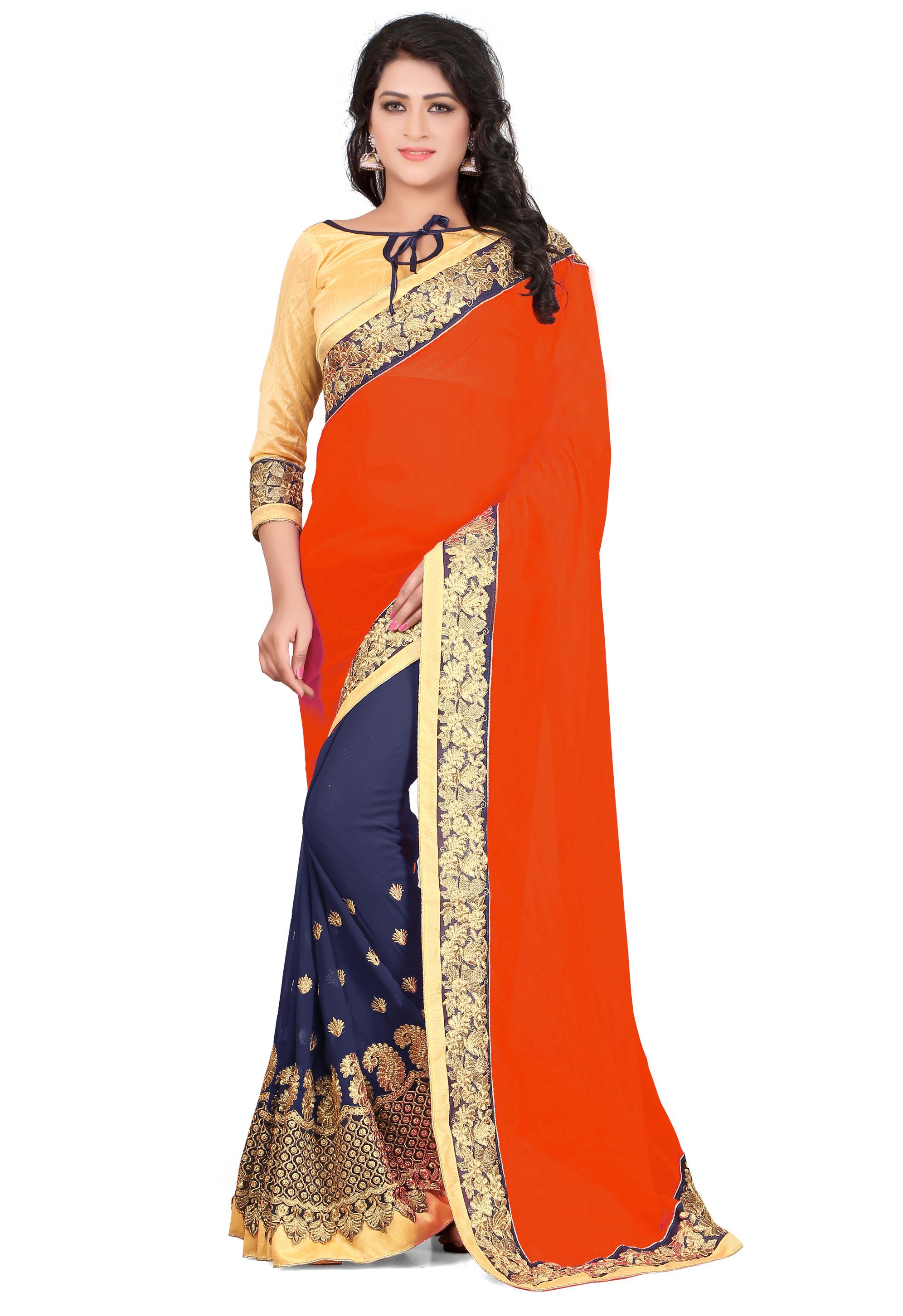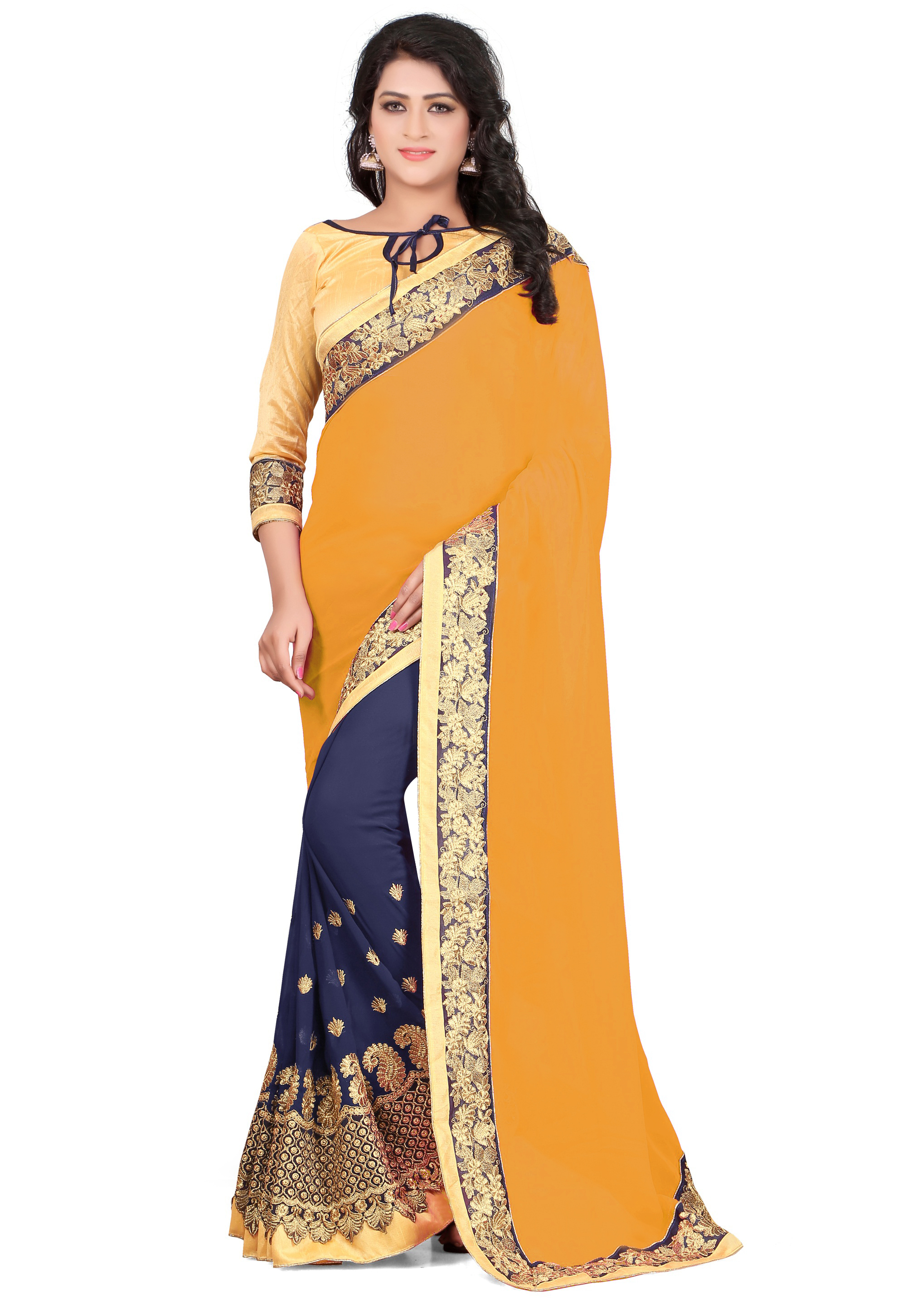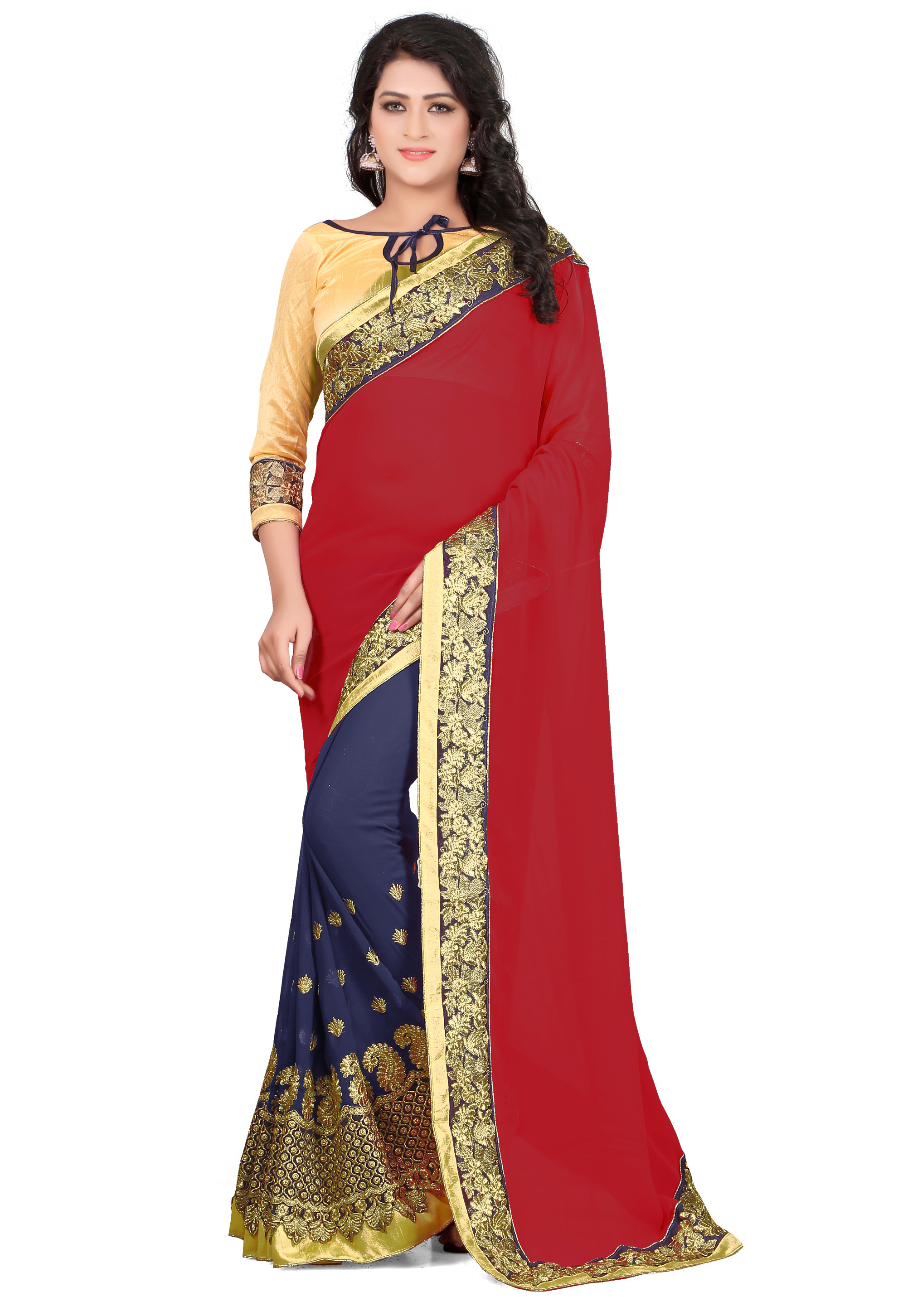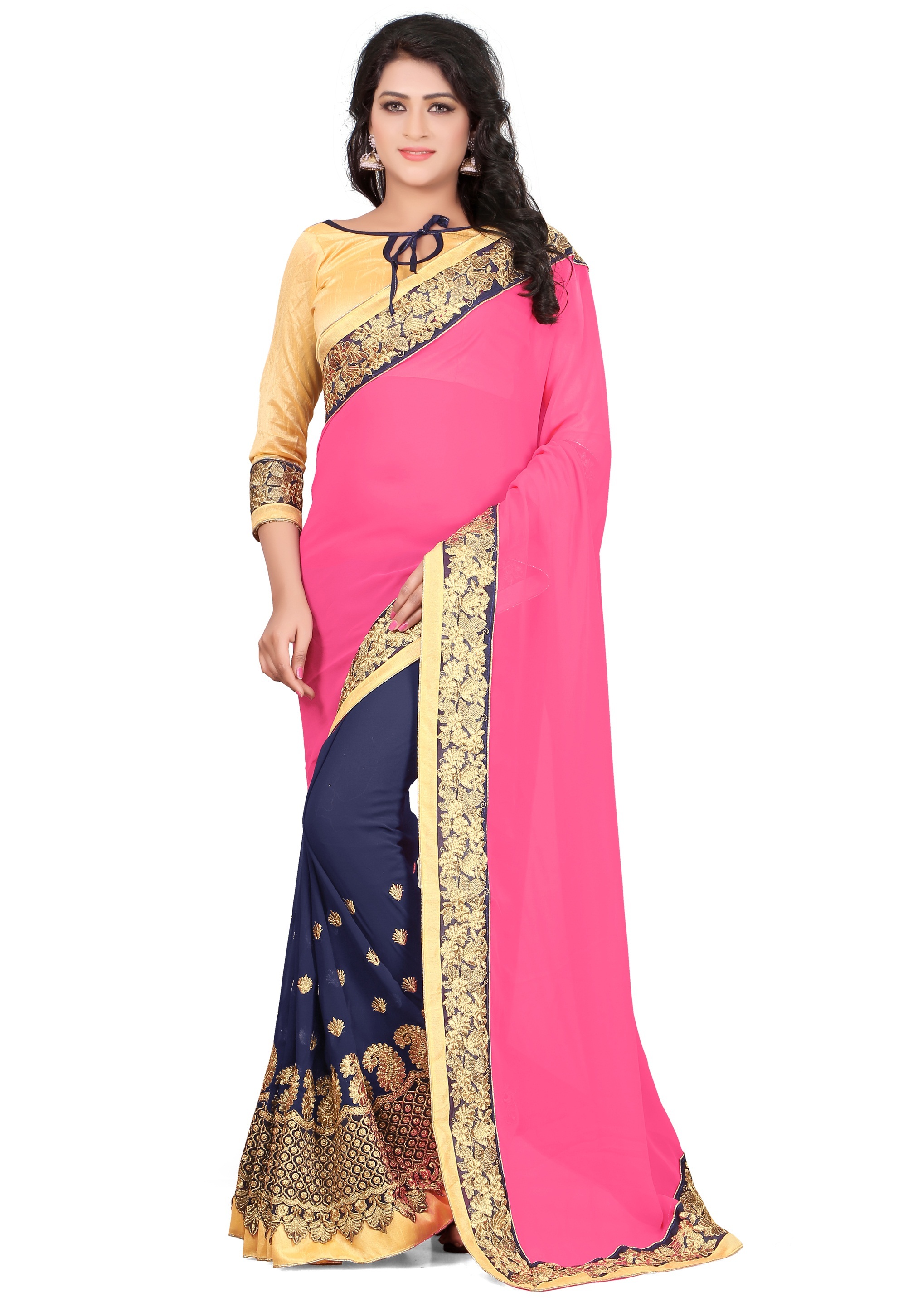 गुलाबी कढ़ाई वाला जॉर्जेट साड़ी कलेक्शन