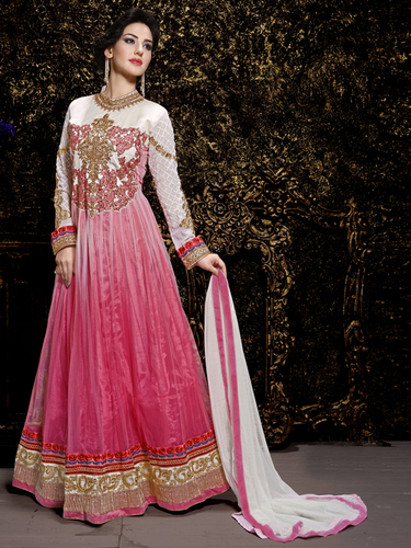 Explore in english - Enticing Multicolor Net Embroidery Designer salwar suit