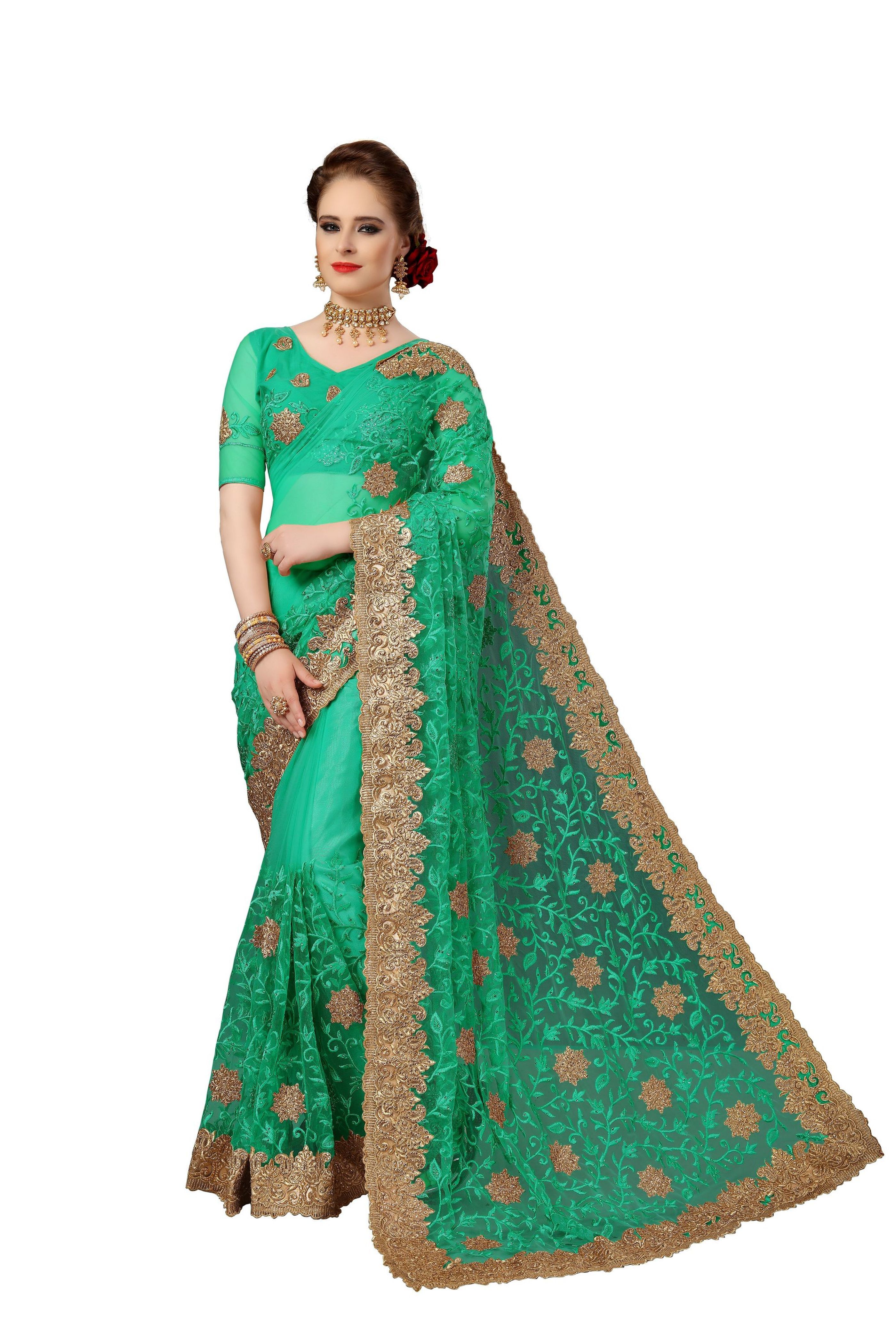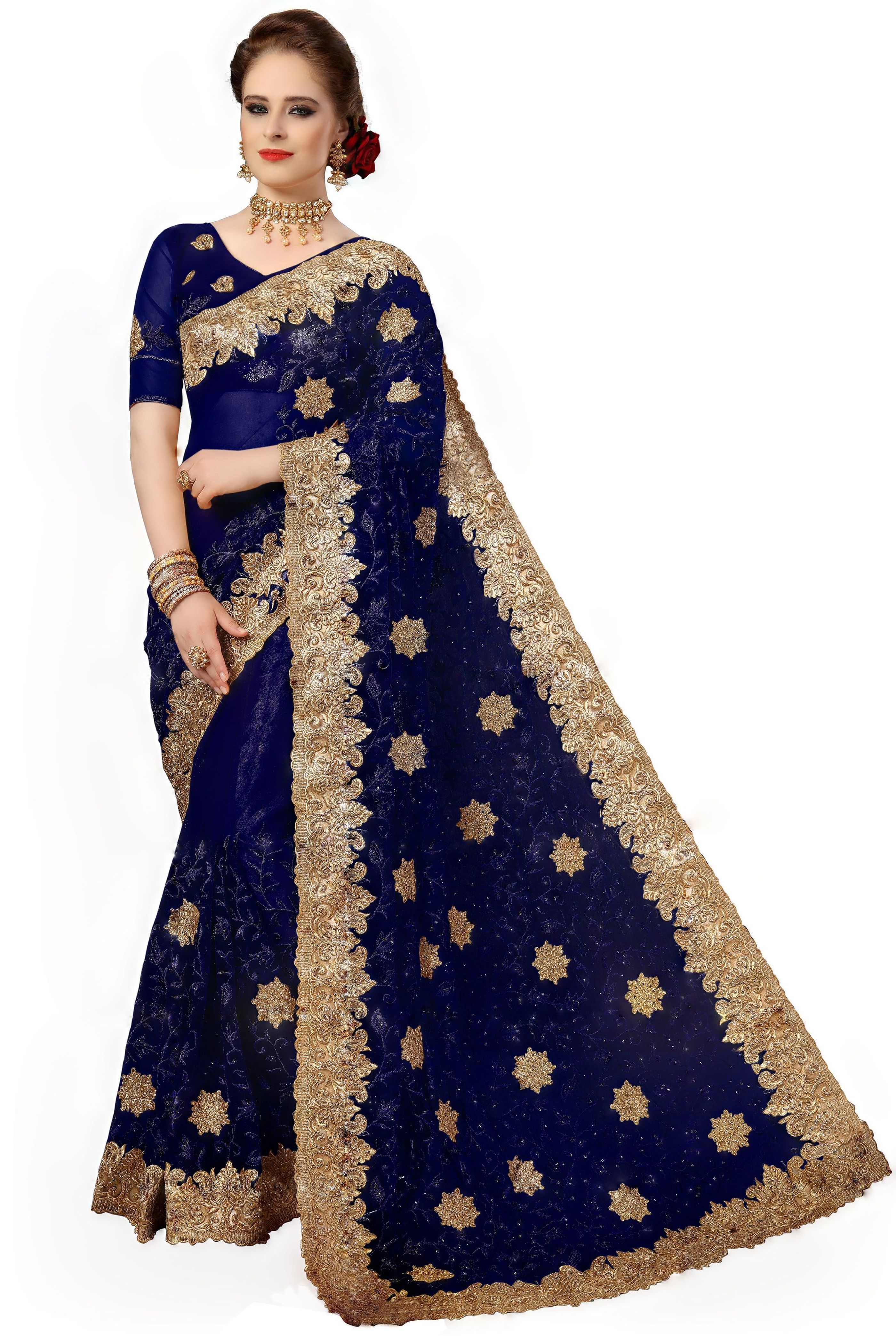 Explore in english - Ethnic design Net Heavy Embroidery Work Saree