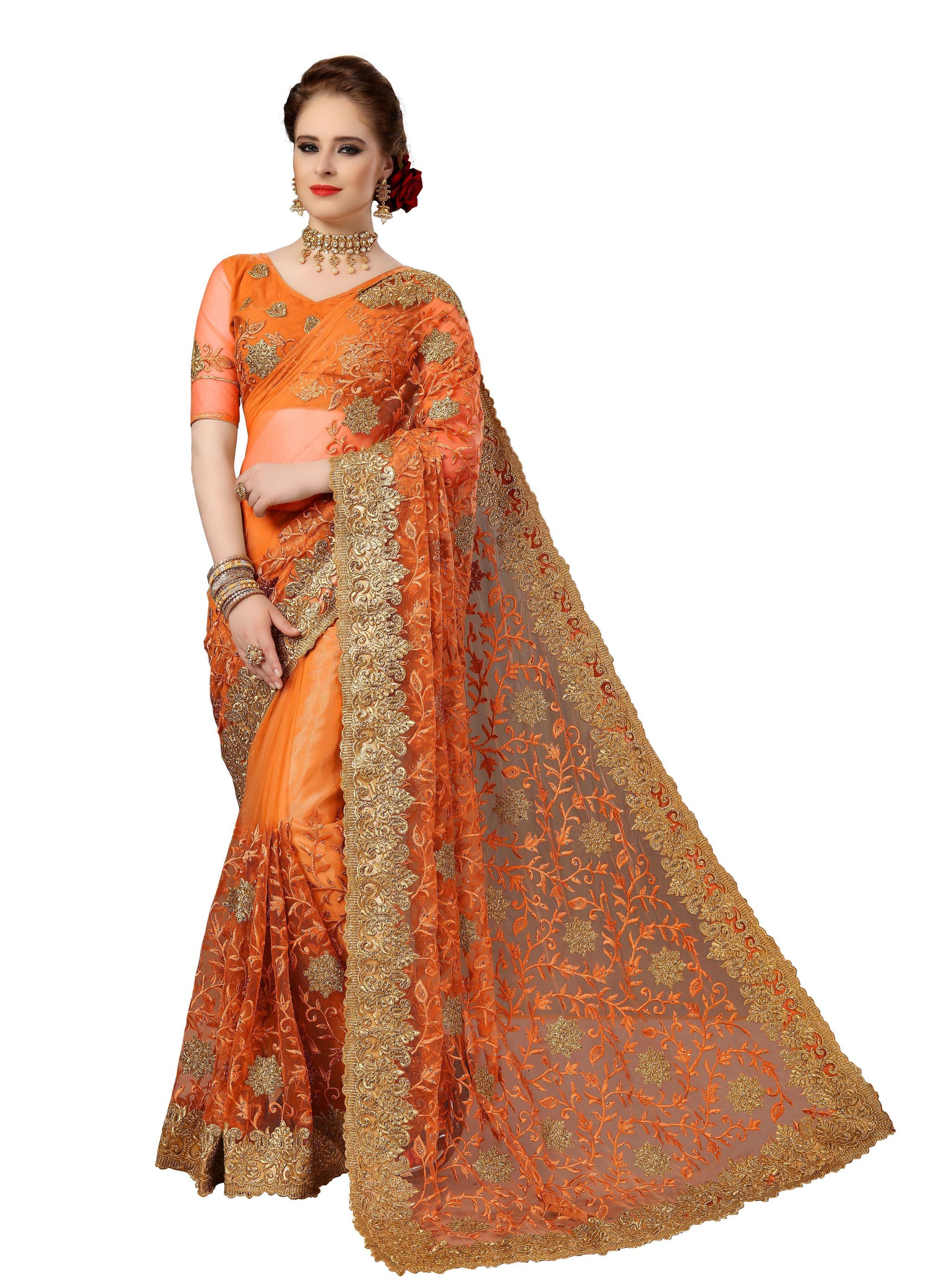 Explore in english - Ethnic Design Net Heavy Embroidery Work Saree