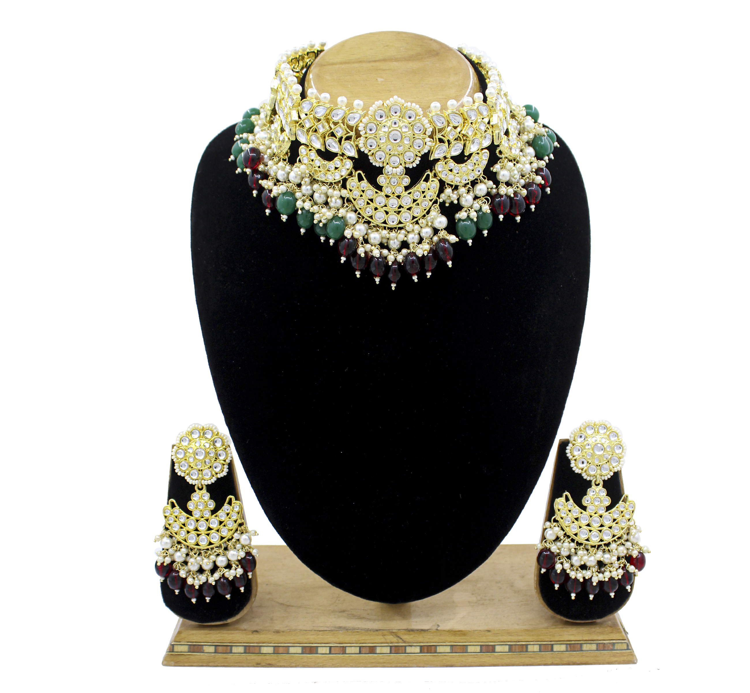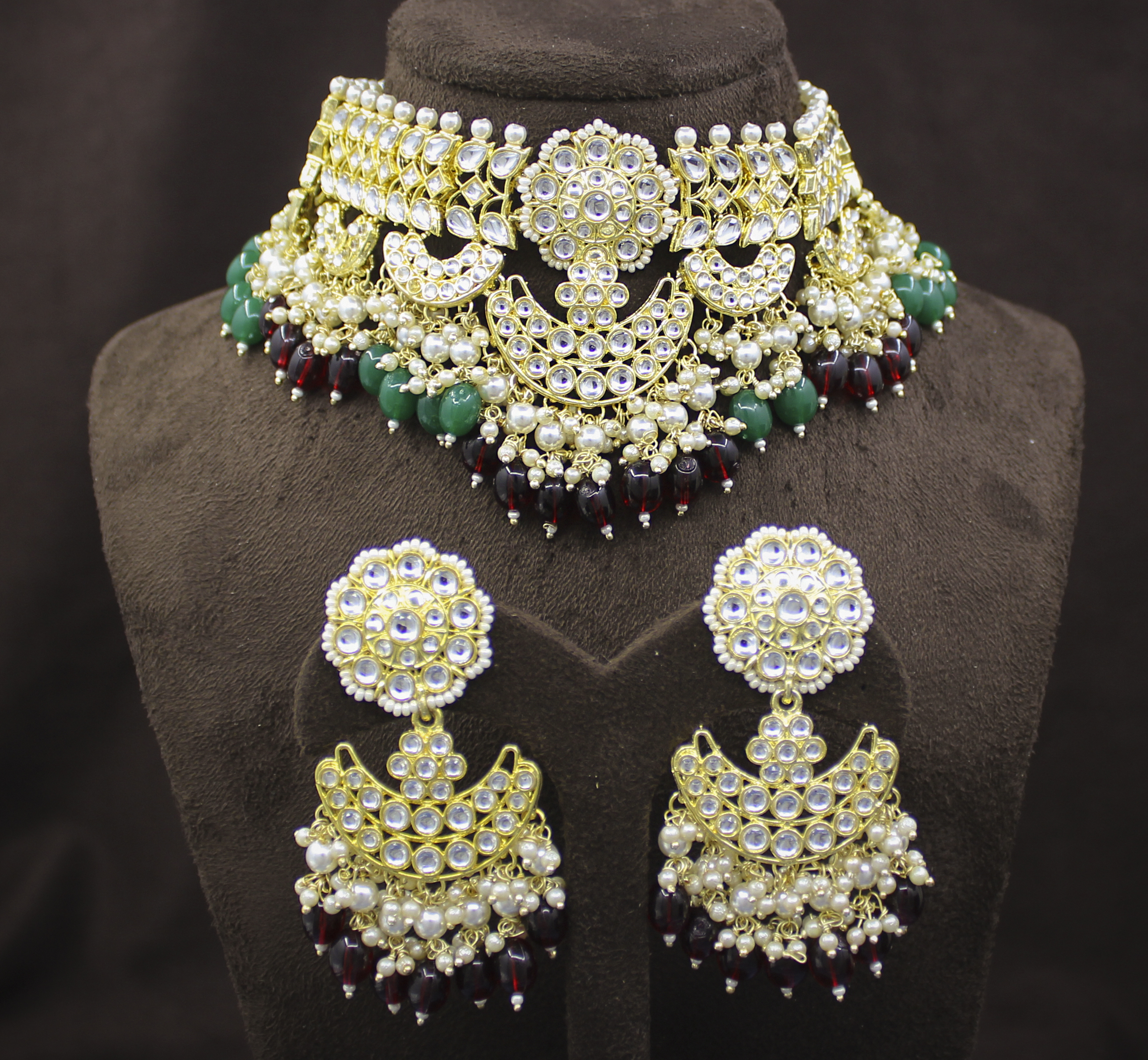 Explore in english - Ethnic Party Wear Design Kundan Choker Necklace With Earring Jewellery Set
