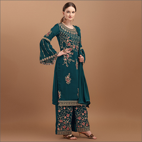 ग्रीन एथनिक सेमी स्टिच्ड जॉर्जेट पलाज़ो सूट