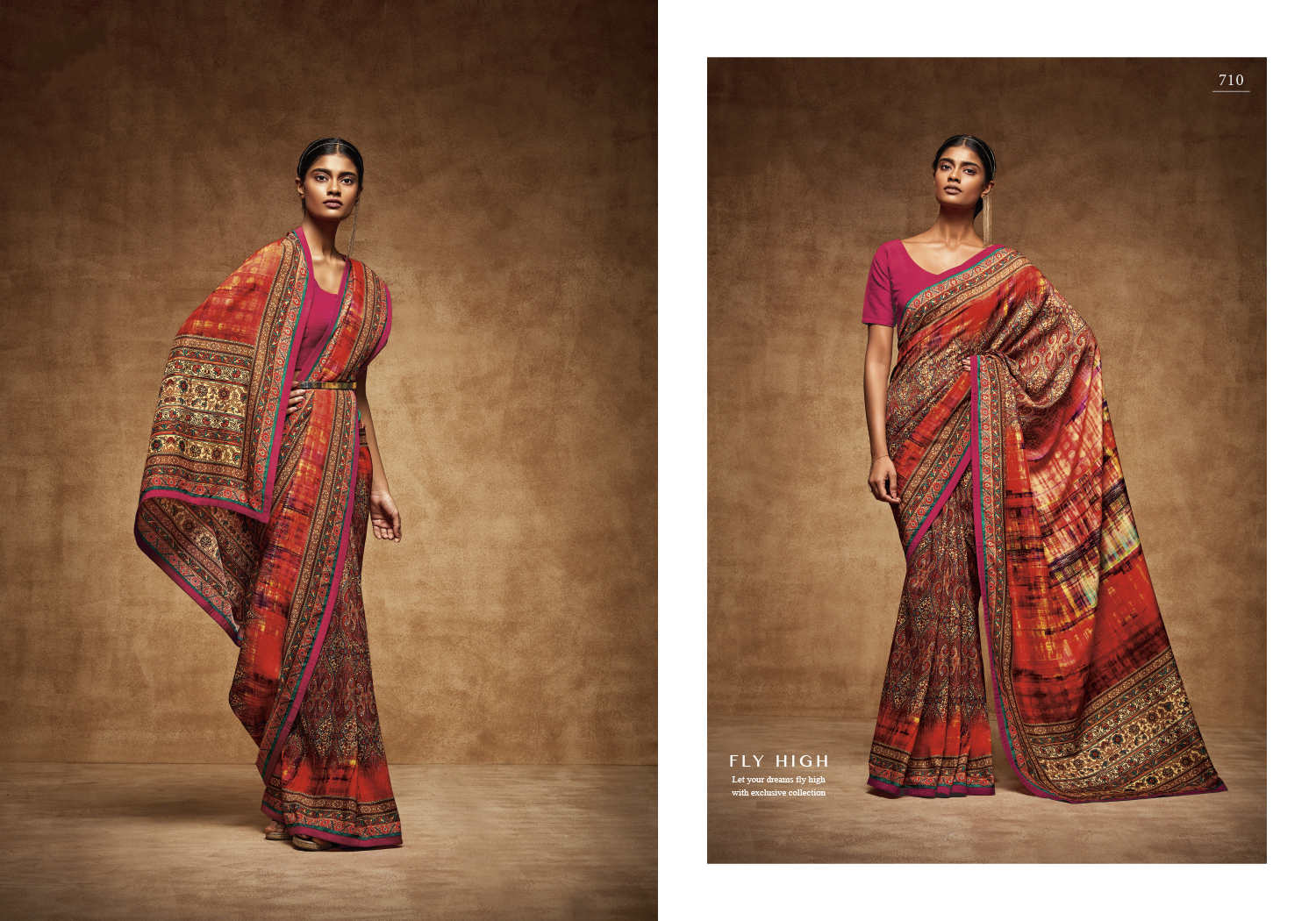 एक्सक्लूसिव प्रिंटेड सिल्क डिज़ाइनर साड़ी