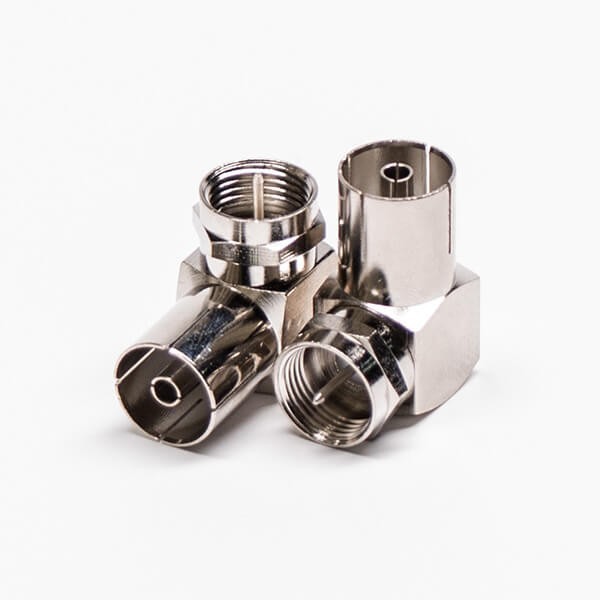 Explore in english - F Type Male To PAL Female Angled Adapter Nickel Plated