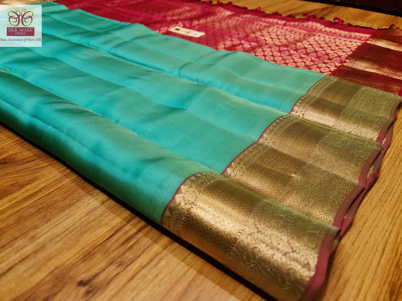 पिंक फैंसी कांचीपुरम सिल्क साड़ी के साथ लाइट रामा ग्रीन