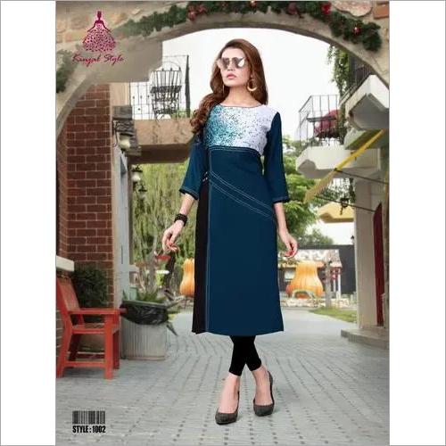 दुपट्टे S6 के साथ समर स्काई डिजिटल प्रिंट स्ट्रेट कुर्ती