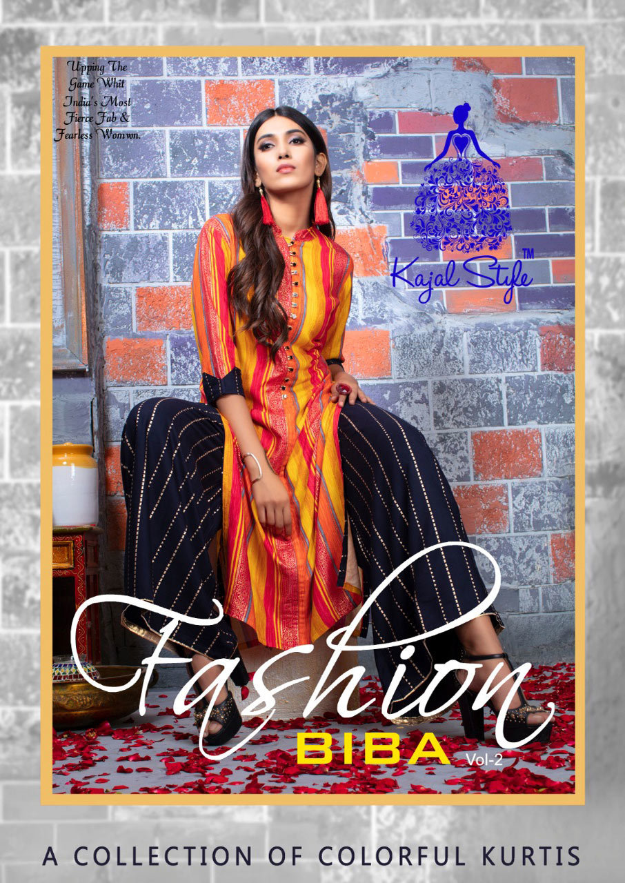 Explore in english - Fashion Biba Vol 2 By Kajal Style Heavy Rayon Print Kurti With Palazzo Catalog