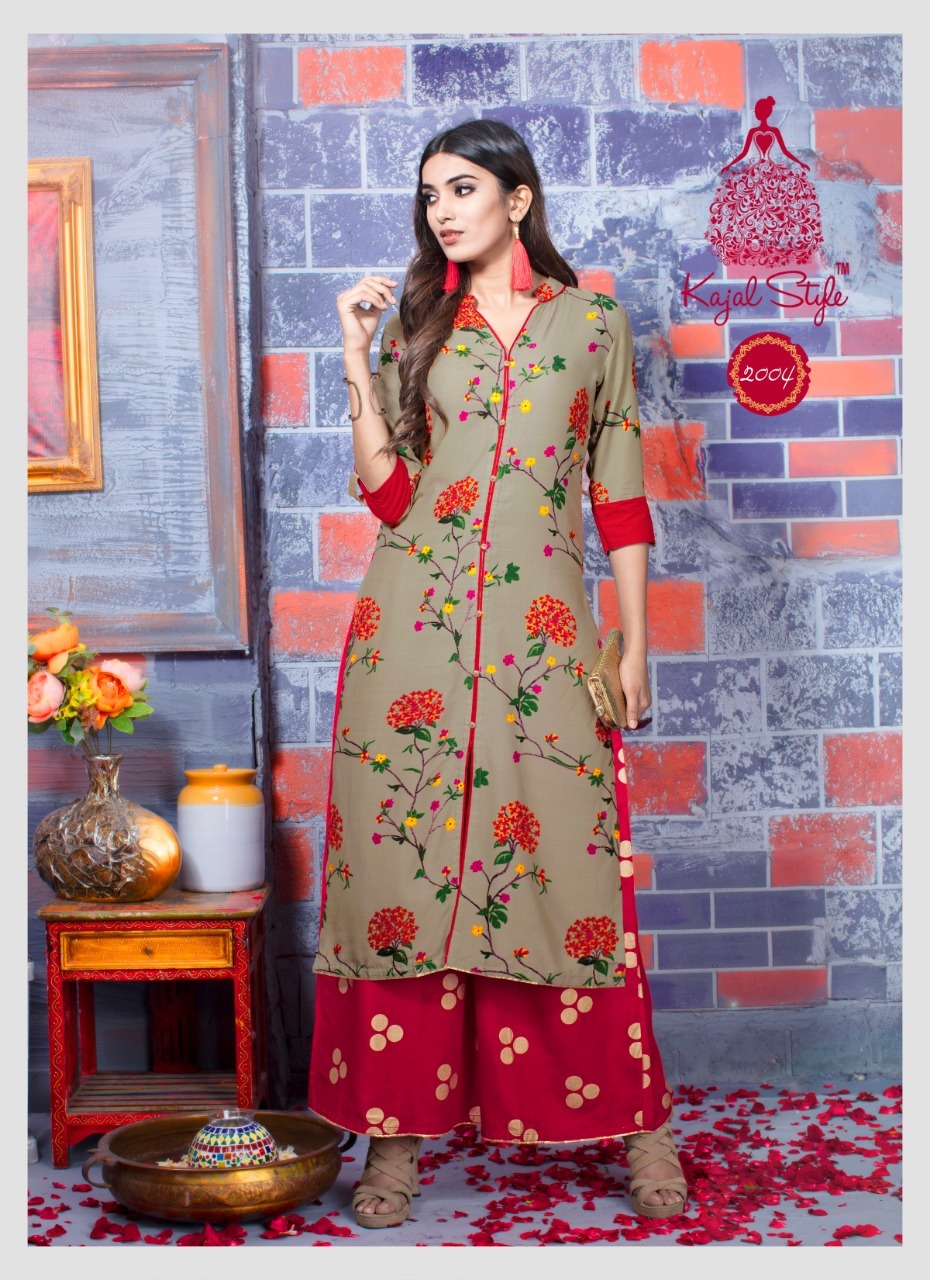 स्प्रिंग फैशन बीबा वॉल्यूम 2 काजल स्टाइल हेवी रेयॉन प्रिंट कुर्ती द्वारा पलाज़ो कैटलॉग के साथ