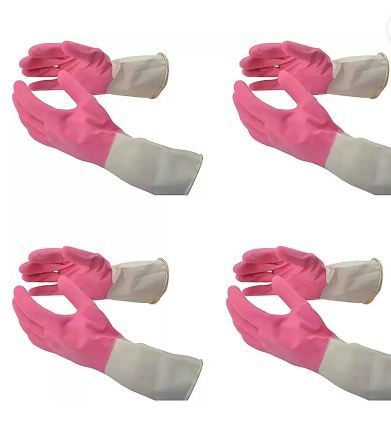 गुलाबी और सफेद और नारंगी और पीले फेरा किंग रबर के दस्ताने