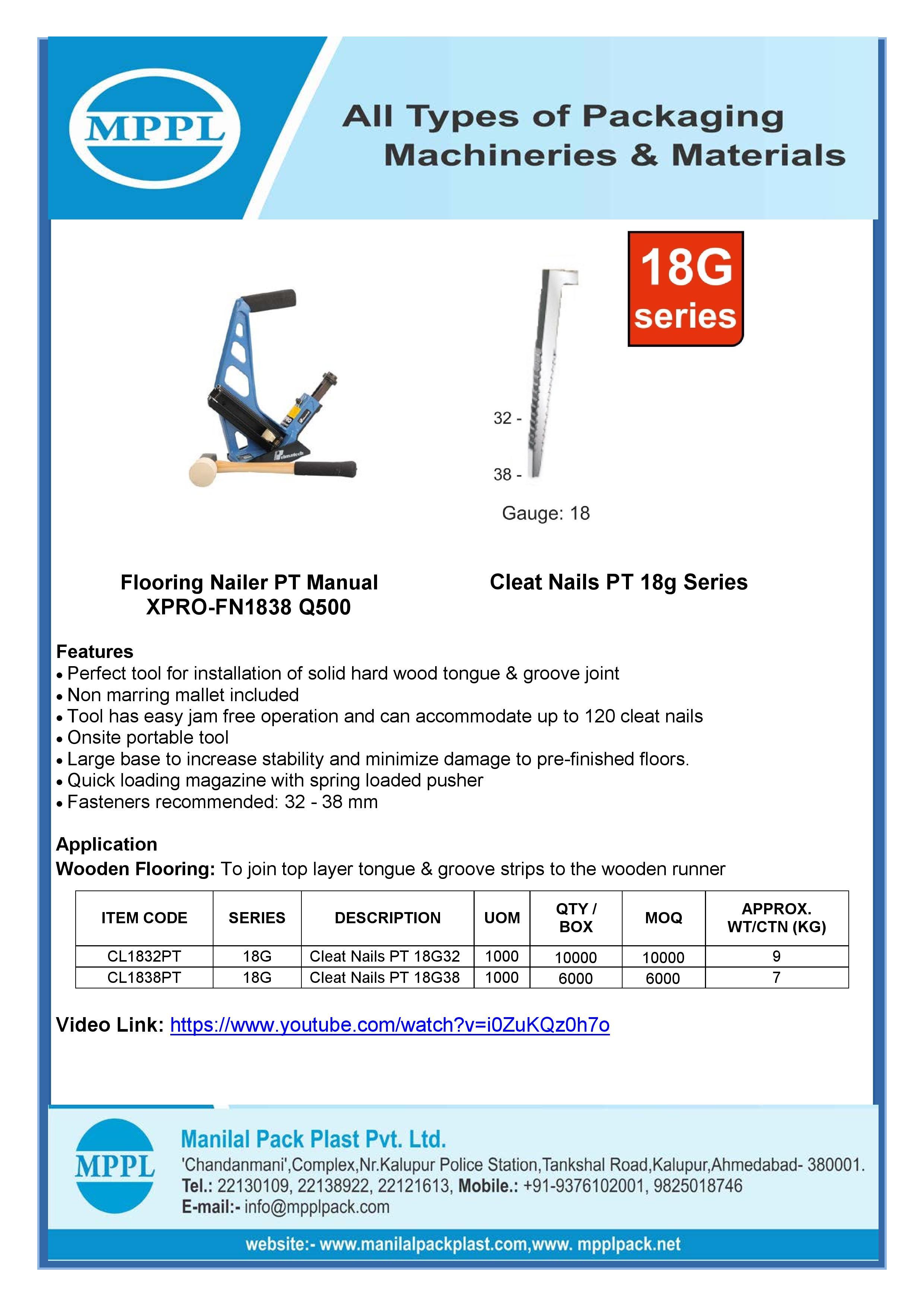 - फ़्लोरिंग नेलर पीटी मैनुअल Xpro-fn1838 Q500