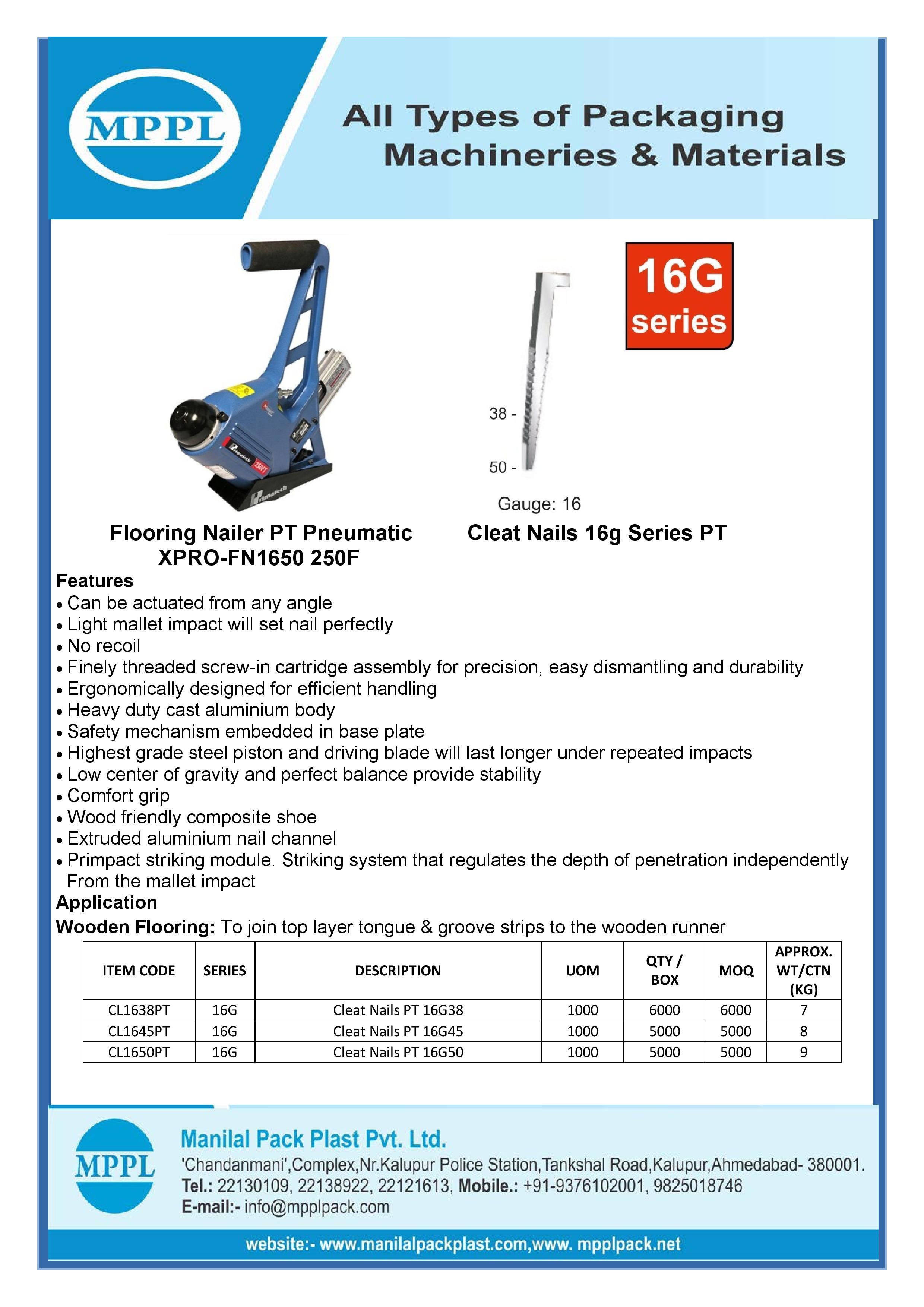 - फ़्लोरिंग नेलर पीटी न्यूमेटिक Xpro-fn1650 250f