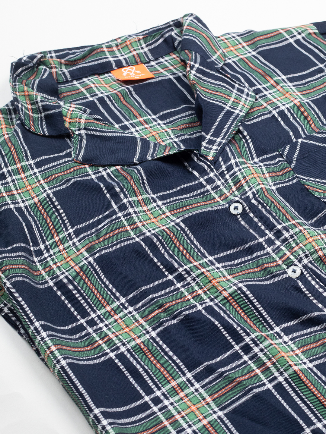 गहरे नीले और सफेद रंग के नाइटवियर के कॉम्बिनेशन में महिलाओं का नाइट गाउन