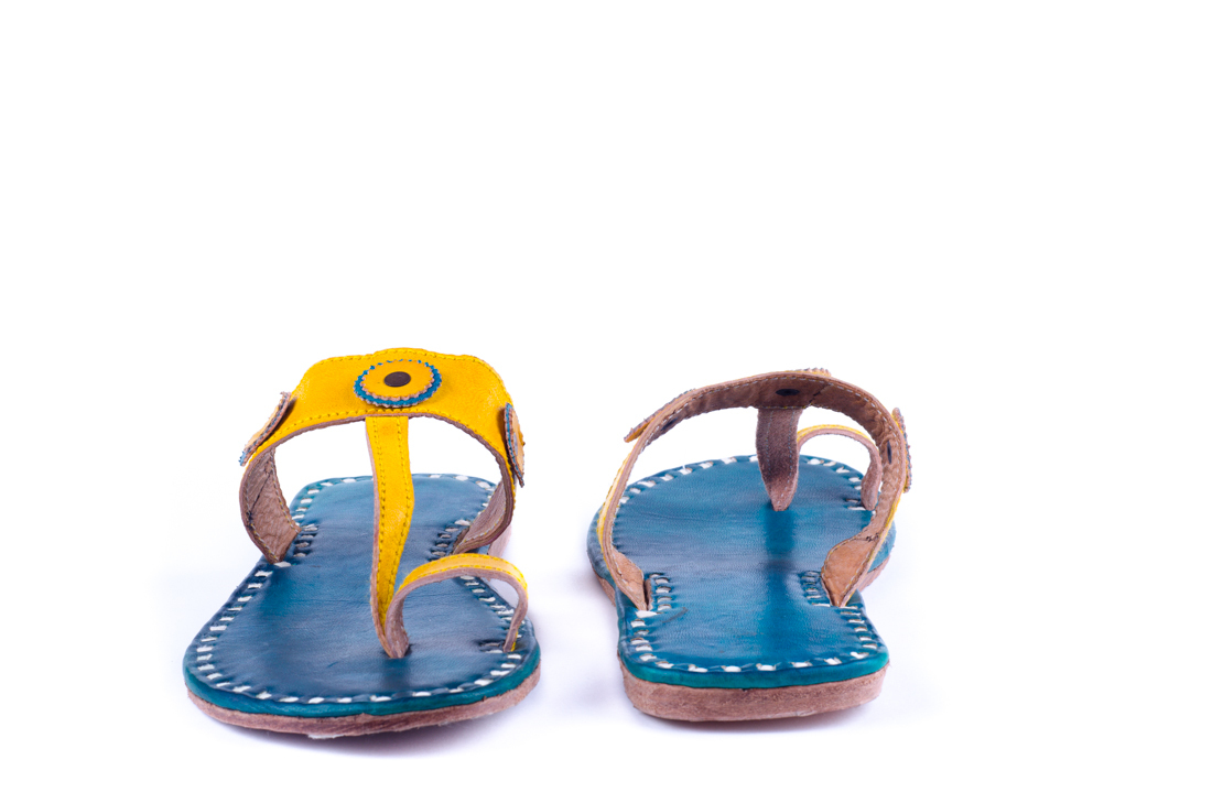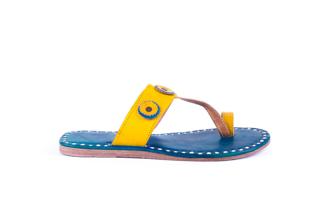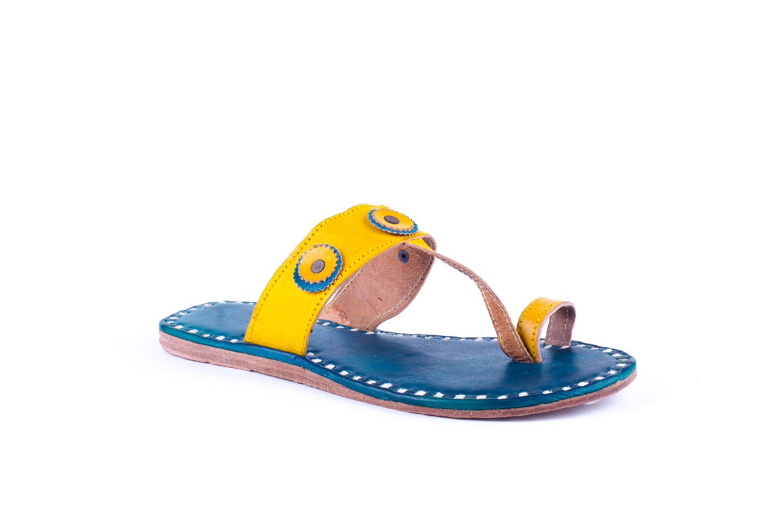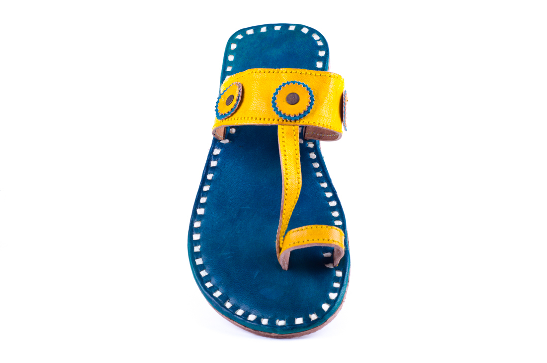 पीला और नीला फ्लोरोसेंट लेदर स्लिपर