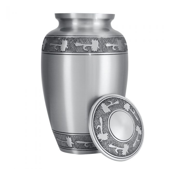 मानव अस्थियों के लिए पुष्प डिज़ाइन वाला एल्युमिनियम वयस्क दाह संस्कार बर्तन, स्मारक बर्तन