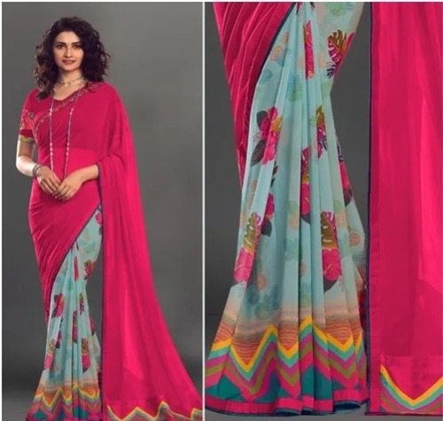 मेटल पार्टी वियर हल्के वज़न की ज़री वर्क बॉर्डर डिज़ाइनर आर्ट सिल्क साड़ी ब्लाउज के साथ