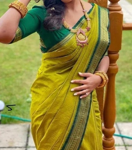 Explore in english - Party Wear Light Weight Zari Work Border Designer Art Silk Saree With Blouse