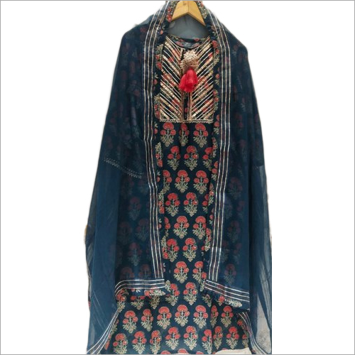 Explore in english - Full Sleeves Printed Cotton Fabric Ladies Party Wear Suit with Dupatta