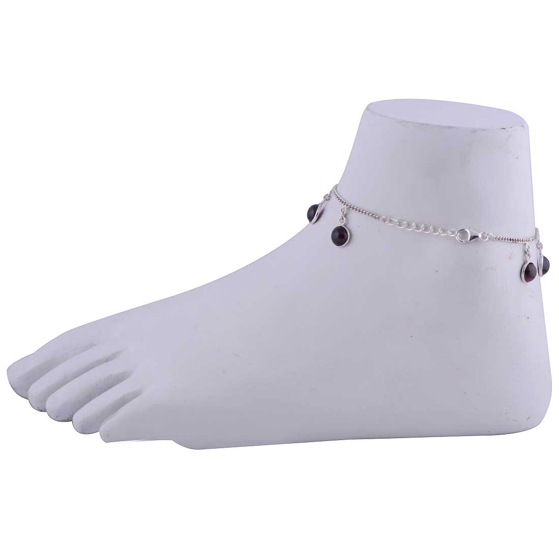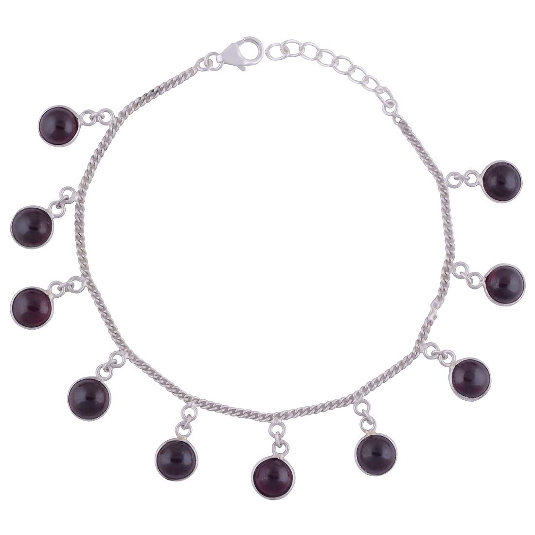 गार्नेट नेचुरल जेमस्टोन राउंड 925 स्टर्लिंग सॉलिड सिल्वर हैंडमेड एंकलेट जेंडर: महिलाएं