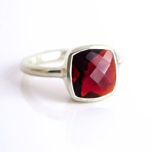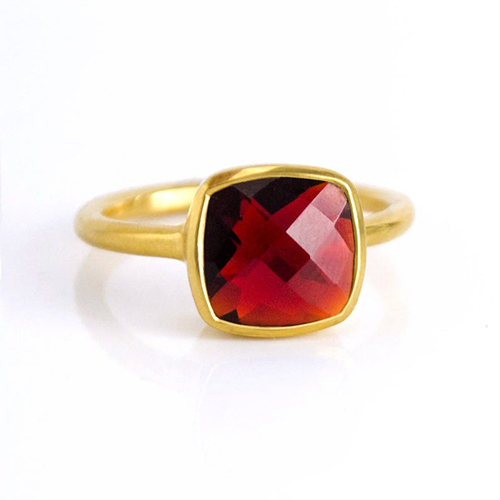 गार्नेट क्वार्ट्ज कुशन शेप स्टर्लिंग सिल्वर गोल्ड वर्मील रिंग